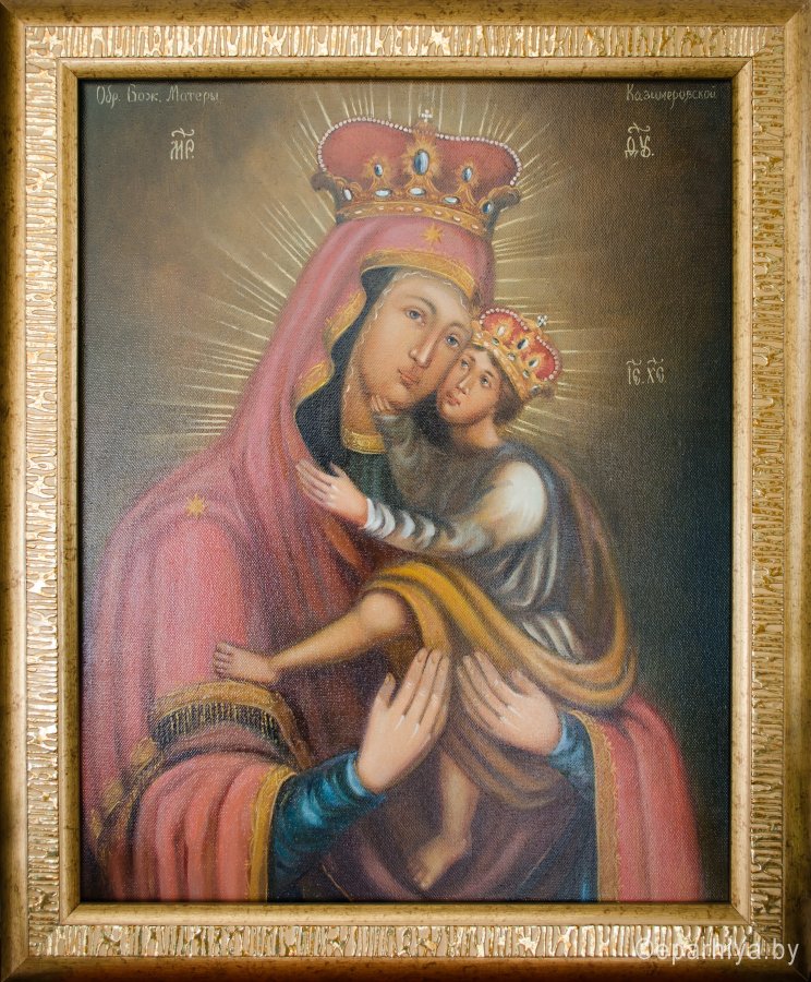 Гомельская земля богата православными святынями. В каждой местности являли себя и свою милость к людям чудотворные иконы Богородицы, для утешения и защиты верующих. 16 октября — день памяти почитаемой на Гомельщине Казимировской иконы Божией Матери в одноименной обители с.Каземирово Божественную литургию в праздник местночтимого чудотворного образа Божией Матери «Казимировская», в Успенском храме обители, возглавил Высокопреосвященнейший Стефан, архиепископ Гомельский и Жлобинский. Высокопреосвященнейшему сослужили: секретарь гомельской епархии протоиерей Георгий Алампиев настоятели приходов г.Жлобина и духовенство епархии. Во время Литургии были вознесены сугубые молитвенные прошения о даровании мира белорусскому народу и прекращении распространения вредоносного поветрия. За богослужением молились игуменьи монастырей Гомельской епархии: Вера (Афонькина) с сестрами Тихвинского женского монастыря г.Гомеля и старшая монахиня Архелая (Новикова) с сестрами Иоанно-Кормянского женского монастыря. По окончании богослужения владыка Стефан возглавил крестный ход и обратился к молящимся со словом назидания. Высокопреосвященнейший Стефан поздравил игуменью Иоанну (Ярец) с сестрами обители, прихожан и духовенство, а так же многочленных паломников с праздником. Причастников с принятием Святых Христовых Таин. В память о совместной молитве раздал всем присутствующим иконки. История иконы Божией Матери "Казимировская" известна с 1713 г., когда речицкий подкоморий Казимир Юдицкий основал монастырь в честь чудотворной иконы, доставшейся ему от предков. Вскоре вблизи монастыря возникло местечко, получившее название Казимирово. Где-то в 1880-х гг. здесь была построена Свято-Успенская церковь. В ней эта икона и находилась. Там же хранилась книжка с описанием чудес от иконы с 1720 по 1764 год, ныне затерянная.В 1812 г. монастырские строения были разрушены войсками Наполеона. В 1839 г. монастырь был закрыт, церковь стала приходской. В 1933-м году закрыли и храм, разобрали на бревна и построили школу. Икона исчезла, но была обретена в 2000-м году. |