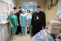 В ходе своего визита в Лоевское благочиние 17 октября 2020г. Высокопреосвященнейший Стефан, архиепископ Гомельский и Жлобинский, совместно с председателем Гомельской областной организации Белорусского Общества Красного Креста Аллой Викторовной Смоляк посетил учреждение здравоохранения «Бывальковская больница сестринского ухода». Владыка Стефан передал санитарно-гигиенические средства для ухода за пациентами, предметы личной гигиены и сладкие сувениры. Алла Викторовна для пациентов учреждения здравоохранения передала постельные принадлежности. |
