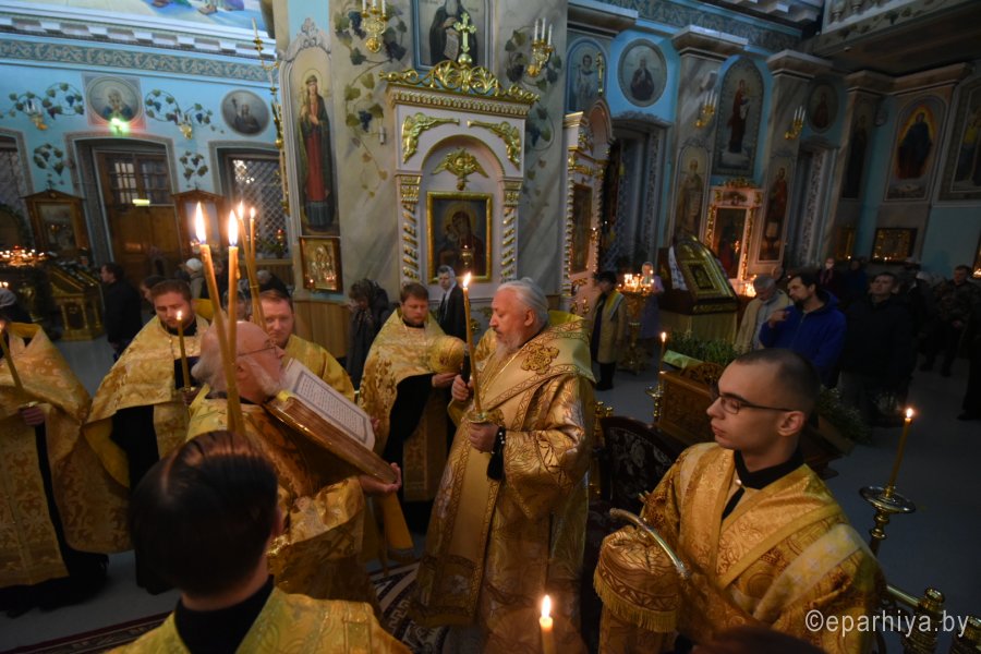 Всенощное бдение в канун Недели 19-ой по Пятидесятнице 17 октября 2020г. в Петро-Павловском кафедральном соборе г.Гомеля совершил Высокопреосвященнейший Стефан, архиепископ Гомельский и Жлобинский. Высокопреосвященнейшему сослужили: секретарь Гомельской епархии протоиерей Георгий Алампиев и духовенство собора. По окончании богослужения владыка Стефан обратился к молящимся со словами архипастырского назидания.