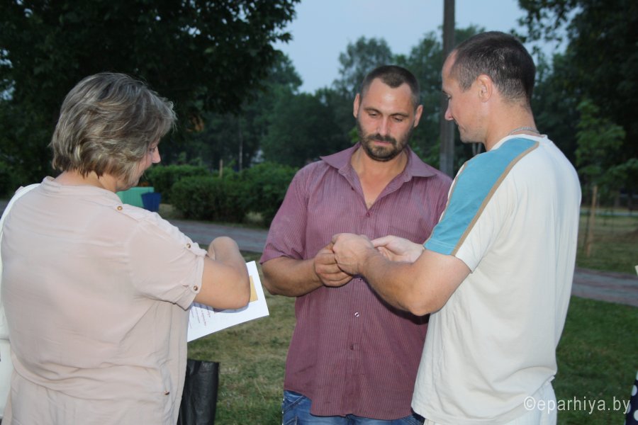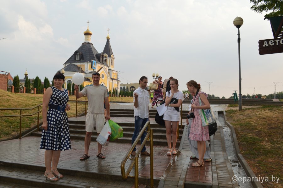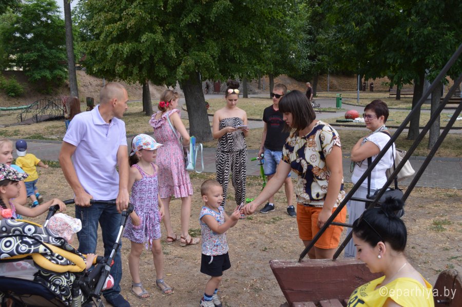 В храмах Гомельской епархии прошли мероприятия, посвященные дню памяти святых благоверных князей Петра и Февронии: По благословению епископа Гомельского и Жлобинского Стефана 8 июля 2015 года в день празднования святых благоверных князей Петра и Февронии Муромских в здании Ветковской городской библиотеки настоятель Свято-Никольского храма агрогородка Даниловичи иерей Андрей Булацкий провел встречу с семьями Ветковского района. С древних времен святые Петр и Феврония считаются покровителями семьи и брака. Им молятся о добром воспитании детей. И это не случайно, их житие свидетельствует о любви и верности, терпении и мудрости – дарах Святого Духа, доступным чистым сердцем и смиренным в Боге. Иерей Андрей поздравил всех присутствующих с праздником, рассказал о чудесном житии святых угодников Божиих, чистых сердцем и смиренных в Боге, об их мудрости и любви и блаженной кончине в один день и час. В ходе беседы были затронуты проблемы современных семей, воспитания детей, однополых браков, абортов, разрушающих традиционный семейный уклад и быт человека. Также в рамках встречи состоялся просмотр фильма «Петр и Феврония. История вечной любви». По окончании беседы священник отвечал на вопросы слушателей, особенно много было вопросов о воспитании детей в семье и о том, как оградить подростков от пагубного влияния различных компаний, от вредных привычек в молодежной среде. Все присутствующие получили из рук священника подарки: буклеты с житием святых благоверных князей Петра и Февронии Муромских, а также магниты с изображением ромашки, изготовленные братством св. Царственных страстотерпцев г. Гомеля, на лепестках которой написан гимн настоящей любви св. апостола Павла (1 Кор. гл.13). 8 июля 2015 г. православное братство в честь апостола Фомы при Приходе храма Покрова Пресвятой богородицы в г. Речице поздравило жителей города с «Днём семьи, любви и верности». На набережной реки «Днепр» и в «Парке Победы» прошли конкурсы детского рисунка и рисунка на асфальте, а также викторина на тему: «Что ты знаешь о семье». Всем участникам вручались магнитики с символом праздника – ромашкой и буклет с высказываниями о семье, любви и детях. В летнем амфитеатре в этот вечер выступал бард из г. Калининграда Игорь Белов, со своей программой «О жизни, вере и любви». Всем присутствующим также были вручены праздничные сувениры. 8 июля Православная Церковь прославляет святых благоверных князя Петра и княгиню Февронию, покровителей супружества. Добрушане собрались у стен строящейся в городе на улице Герцена часовни, которая будет освящена в честь святых Петра и Февронии, чтобы вместе помолиться о благополучии в своих семьях, о мире и согласии в них. Был отслужен водосвятный молебен с акафистом. Клирик благочиния иерей Алексей Рыкалин произнес проповедь. Он говорил о том, что благоверные князь Петр и княгиня Феврония своей верностью, преданностью и настоящей любовью, способной на жертву ради любимого человека, показали нам добрый пример. Призвал всех молиться им о ниспослании в семью мира, об укреплении супружеских уз и о защите семьи от козней лукаваго. В завершении богослужения всем присутствующим раздали буклеты. День памяти святых Петра и Февронии Муромских отметили в приходе храма Серафима Саровского в г. Гомеле 8 июля день снова выдался жарким. Но это 