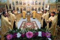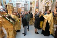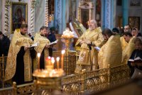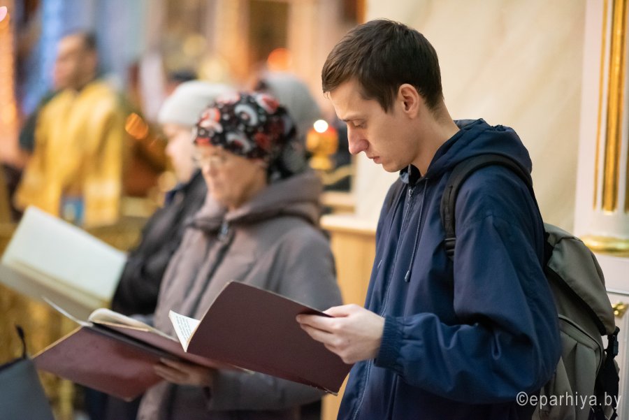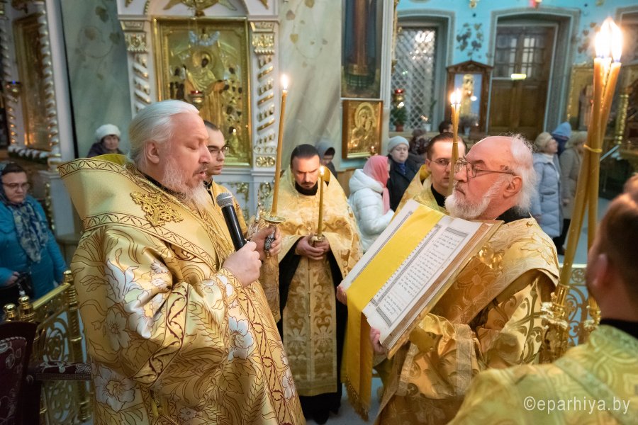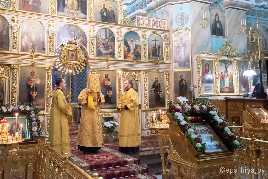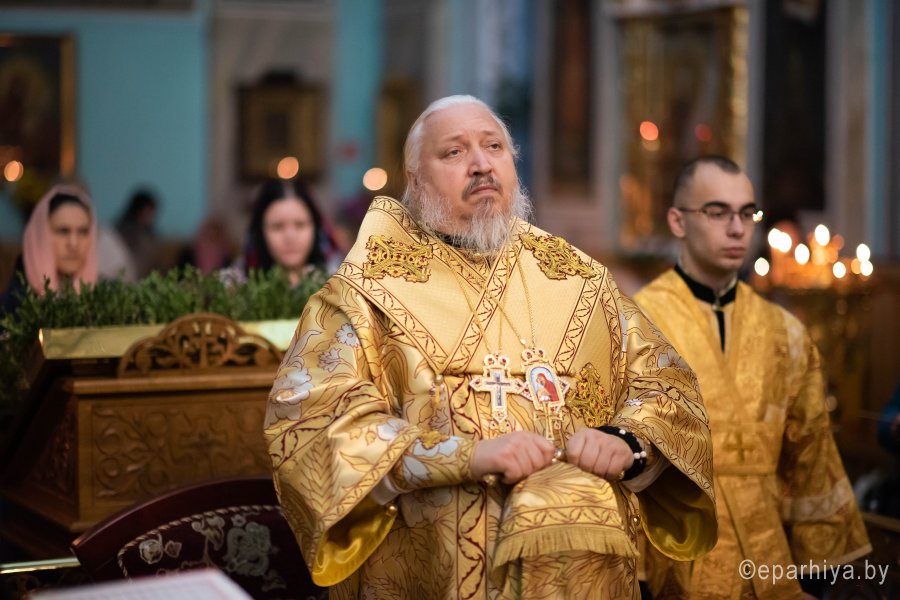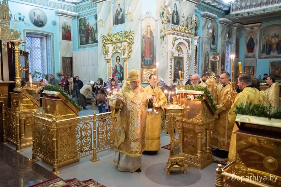 Вечернее богослужение с чтением акафиста на распев в Петро-Павловском кафедральном соборе г.Гомеля 18 октября 2020г. совершил Высокопреосвященнейший Стефан, архиепископ Гомельский и Жлобинский, в сослужении духовенства собора. Высокопреосвященнейшему сослужили: секретарь Гомельской епархии протоиерей Георгий Алампиев и духовенство епархии. По окончании богослужения владыка Стефан обратился к молящимся со словами архипастырского назидания. |