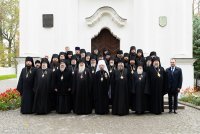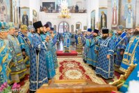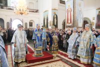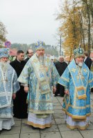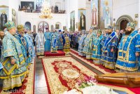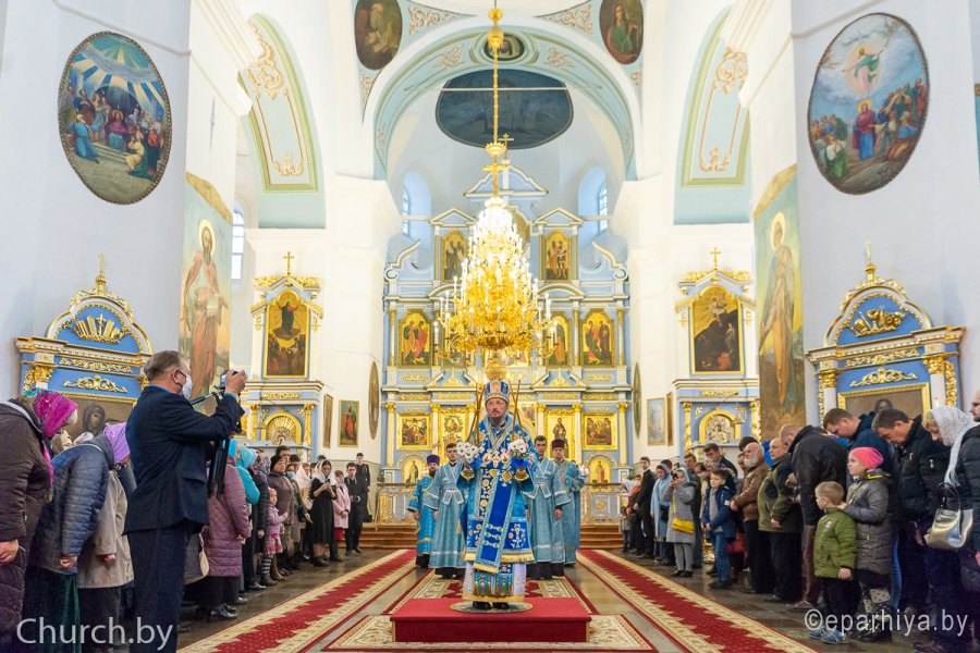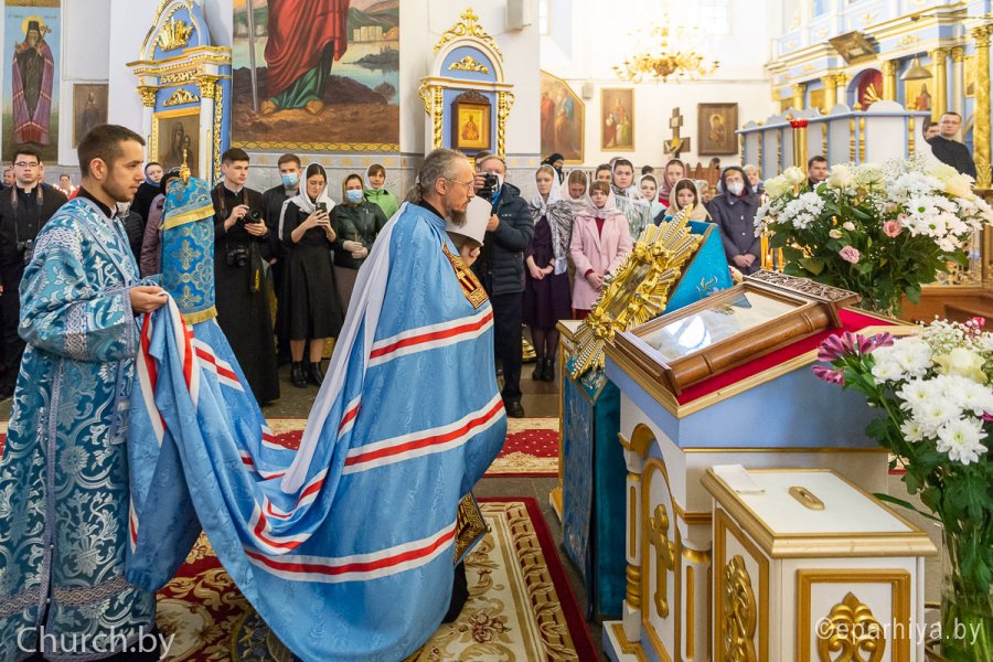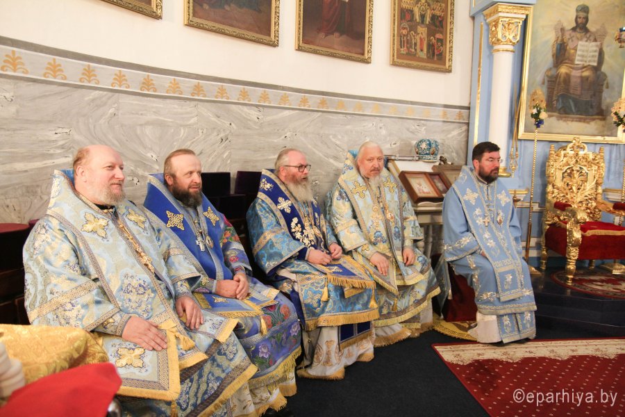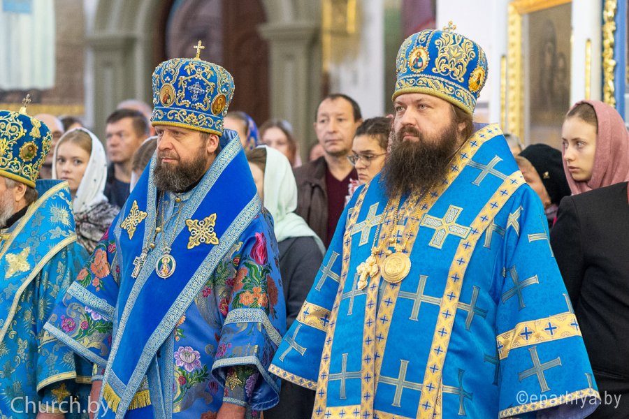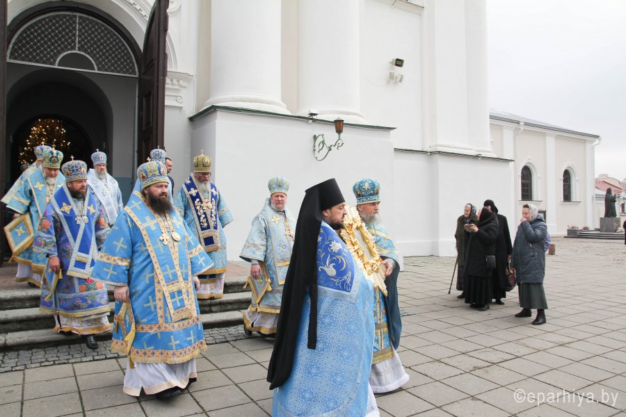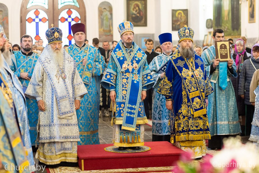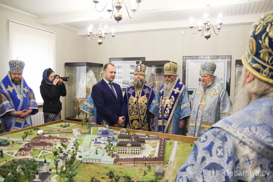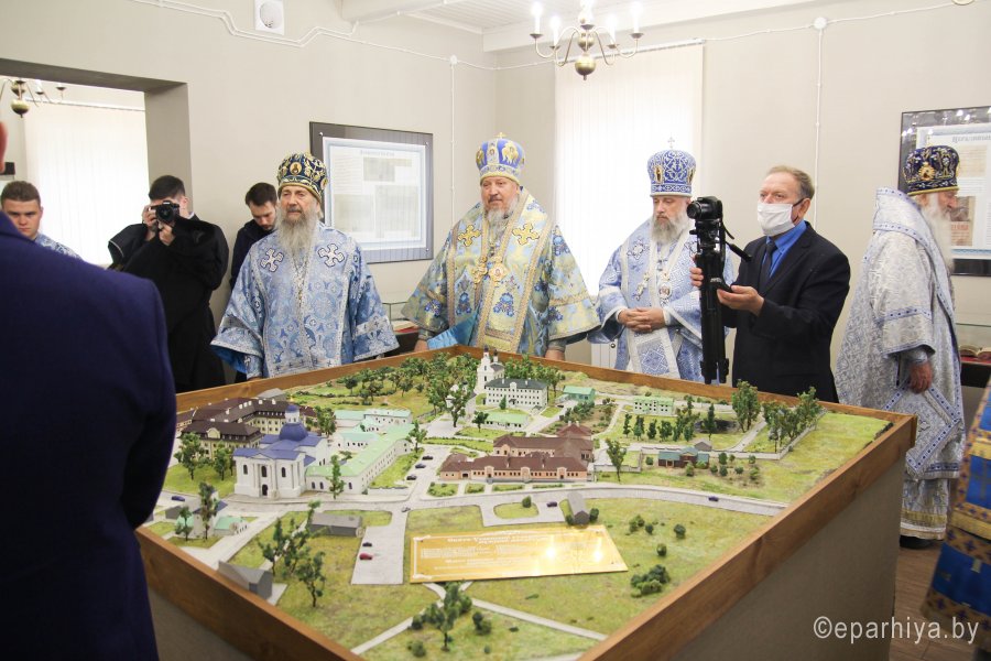 25 октября 2020 года, в Неделю 20-ю по Пятидесятнице, архипастыри Белорусской Православной Церкви в рамках торжественных мероприятий, посвященных 550-летию обретения Жировичской иконы Божией Матери и 500-летию основания Жировичского Успенского ставропигиального мужского монастыря, совершили праздничную Божественную литургию в Успенском соборе обители. Богослужение возглавил Патриарший Экзарх всея Беларуси митрополит Минский и Заславский Вениамин. Его Высокопреосвященству сослужили: архиепископ Пинский и Лунинецкий Стефан, наместник Жировичского монастыря архиепископ Новогрудский и Слонимский Гурий, архиепископ Феодосий, архиепископ Могилевский и Мстиславский Софроний, архиепископ Брестский и Кобринский Иоанн, архиепископ Гомельский и Жлобинский Стефан, епископ Бобруйский и Быховский Серафим, епископ Мозырский и Туровский Леонид, епископ Молодечненский и Столбцовский Павел, епископ Лидский и Сморгонский Порфирий, епископ Полоцкий и Глубокский Игнатий, викарий Гомельской епархии епископ Светлогорский Амвросий. Участие в праздничных мероприятиях приняли администрация, преподаватели, сотрудники и студенты Минской духовной семинарии. Архиереям сослужили: насельник обители архимандрит Борис (Пирог), доцент МинДС протоиерей Геннадий Повный, преподаватель семинарии иерей Евгений Солонков и гости в священном сане. Диаконский чин возглавил протодиакон Владимир Назаров. За Литургией пел мужской хор Минской духовной семинарии под управлением протодиакона Андрея Скробота. За богослужением собравшиеся в храме вознесли сугубые молитвы о даровании мира и благополучия белорусскому народу. По запричастном стихе проповедь произнес старший помощник проректора по воспитательной работе МинДС иеромонах Агафангел (Будишин). После Божественной литургии духовенство и молящиеся крестным ходом проследовали к колокольне монастыря, в которой был открыт Паломнический центр и музей, посвященный истории Жировичской обители. Музейную экспозицию, предназначенную для посещения паломников, представил проректор по научно-богословской работе МинДАиС доцент Александр Слесарев. В завершение праздничных мероприятий со словами приветствия и благодарности к Синоду Белорусской Православной Церкви и всем почтившим праздник обратился наместник монастыря архиепископ Гурий. Патриарший Экзарх также обратился с архипастырским словом к собравшимся и преподал верующим благословение. В этот же день в актовом зале монастыря состоялось совещание архиереев Белорусской Православной Церкви, прибывших на торжества. На заседании были обсуждены текущие вопросы церковной жизни. По материалам сайта www.church.by |