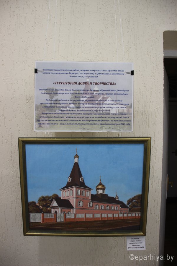 В Светлогорской картинной галерее «Традиция» им. Германа Прянишникова в рамках VI областных Покровских образовательных чтений 2020 года «Историческая память народа: 500-летие Жировичского монастыря, 550-летию явления Жировичской иконы Божией Матери, 800-летие святого благоверного князя Александра Невского» проходит выставка документальной фотографии и детского рисунка, рассказывающая о духовно-просветительской деятельности храмов Светлогорского благочиния. На открытии выставки присутствовали настоятель приходов храма Святой великомученицы Варвары аг. Боровики и храма Святых Двенадцати Апостолов аг. Чирковичи архимандрит Алексий (Желенок), настоятель прихода храма Святых апостолов Петра и Павла в г. Светлогорске протоиерей Владимир Семенов, образцовый концертный хор Светлогорской детской школы искусств «Рамонкi» под руководством Регины Котвицкой, почетные гости. Представленные на выставке рисунки являются результатом плодотворной духовно-просветительской работы приходов храма Святой великомученицы Варвары аг. Боровики и храма Святых Двенадцати Апостолов аг. Чирковичи Светлогорского благочиния Гомельской епархии. Так, под руководством настоятеля храмов архимандрита Алексия (Желенка) ребята, которые посещают воскресные приходские школы, не только знакомятся с основами православной культуры, но и изучают историю родного края, путешествуют и приобщаются к миру искусства. Особое место на выставке отведено художественным работам воспитанников воскресных школ. Эти работы стали своеобразным итогом пленэра, проходившего прошлым летом. Тогда вместе с детьми работали художники из других городов. Светлые, теплые, добрые картины сегодня радуют посетителей картинной галереи и еще раз напоминают о том, что наша жизнь невозможна без доброты и любви к людям и окружающему нас миру. |