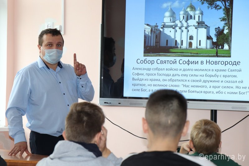 В учреждениях образования Ветковского района состоялось открытие VI Покровских районных образовательных чтений. В течение этой недели с учащимися 1-11 классов проводятся воспитательные мероприятия, посвященные таким темам, как: «Историческая память народа: 500-летие Жировичского монастыря», «550-летие явления Жировичской иконы Божией Матери», «800-летие святого благоверного князя Александра Невского». Кинолектории, презентации, устные журналы, исторические экскурсии, виртуальные путешествия — педагоги творчески подошли к изложению материала в каждом классе. 9 ноября 2020 года в рамкахобразовательных чтений в ГУО «Гимназия г.Ветки» состоялась встреча учащихся 11 класса с настоятелем Прихода храма святителя Николая Чудотворца аг.Даниловичи Ветковского района протоиереем Андреем Булацким, а 10 ноября 2020 года также состоялась беседа с учащимися ГУО «Приснянская базовая школа». В гимназии образовательные чтения начались с приветственного слова и рассказа священника о талантливом полководце и государственном деятеле святом благоверном князе Александре Невском. В лице святого князя мы видим удивительный пример мудрого государственного мужа, настоящего патриота, глубоковерующего человека, беззаветно любившего свой народ и свою страну, посвятившего всю свою жизнь во благо Отечества. Священник подробно рассказал и о чудесном явлении Жировичской иконы Божией Матери, самой маленькой в мире нерукотворной иконы Богородицы, размером всего лишь 46мм на 53мм, которая помещается в ладошку человека: «Это икона единственная из белорусских чудотворных икон выполнена в плоском рельефе на камне. Согласно преданию, икона явилась в 1470 году близ деревни Жировичи (сейчас это Слонимский район, Гродненской области). Пастухи боярина православного вероисповедания Александра Солтана нашли икону в ветвях дикой груши, от которой исходило необыкновенное сияние, и отнесли её хозяину имения. Тот запер её в ларец. На следующий день к Солтану пришли гости, и хозяин захотел показать им эту чудную находку, но, к своему удивлению, он не обнаружил иконы в ларце. Через некоторое время пастушки вновь увидели икону на том же месте, где и в первый раз, и опять отнесли её Солтану. Теперь он уже с трепетом припал к иконе и тотчас посетил место явления святыни, дав обет построить здесь храм в честь Пресвятой Богородицы. Весть о чудесном явлении иконы быстро разнеслась по окрестностям, и сюда стали приезжать люди для поклонения святыне. Солтаном был построен храм, а при храме была основана церковная школа для детей. Многие оставались на постоянное жительство, так как в храме проходили ежедневные богослужения, а местность была весьма благоприятной для жизни, богата лесами и пастбищами. В 1520 г. случился пожар, храм сгорел, и икона была утеряна. После этого внук Солтана Иван Александрович начал строительство каменного храма. Спустя некоторое время после пожара дети увидели недалеко от школы Пречистую Богородицу, сидящую на камне с иконой в руках, и побежали за священником, который, придя, нашёл икону, лежащую на камне, и перед ней горящую свечу. На камне был отпечатан след правой ладони Пречистой Девы. Камень этот теперь стоит в качестве престола в алтаре Явленской церкви, построенной на месте второго обретения иконы. О времени основания Жировичского монастыря говорится