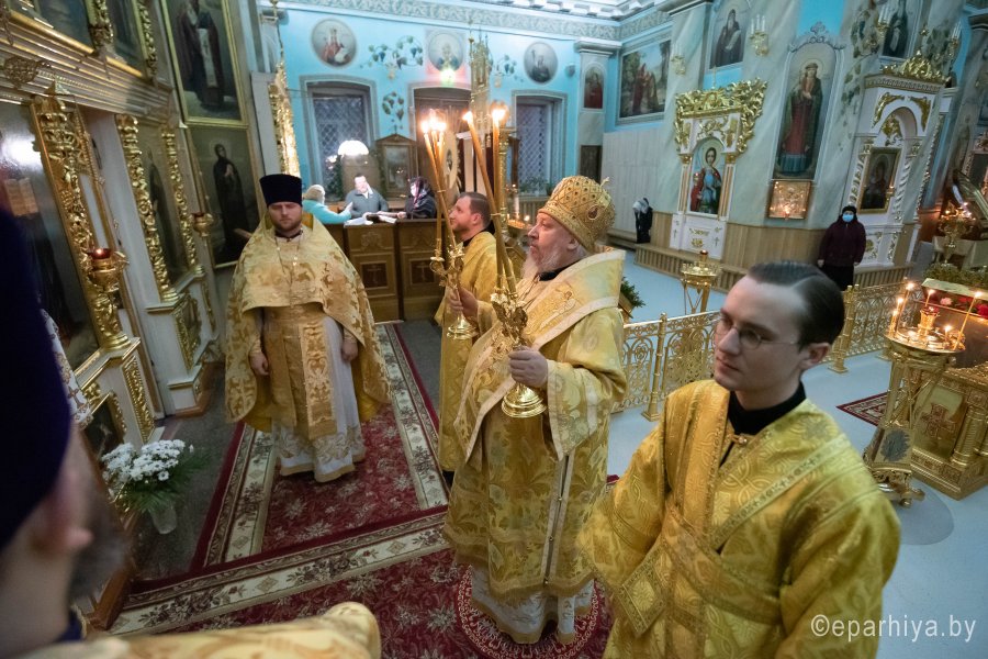 Божественную литургию в пятницу 24-й седмицы по Пятидесятнице, 20 ноября 2020 года в Петро-Павловском кафедральном соборе г.Гомеля совершил Высокопреосвященнейший Стефан, архиепископ Гомельский и Жлобинский, в сослужении духовенства собора. За богослужением были вознесены сугубые молитвенные прошения о даровании мира белорусскому народу и прекращении распространения вредоносного поветрия. По завершении богослужения Высокопреосвященнейший Стефан поздравил причастников с принятием Святых Христовых Таин и обратился к молящимся со словами архипастырского назидания. Сегодня, 20 ноября Православная Церковь чтит память 33-х святых мучеников, пострадавших за Христа в Мелитине в III веке. Это были воин Иерон и его дружина — 32 человека.