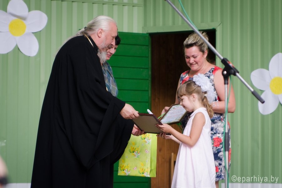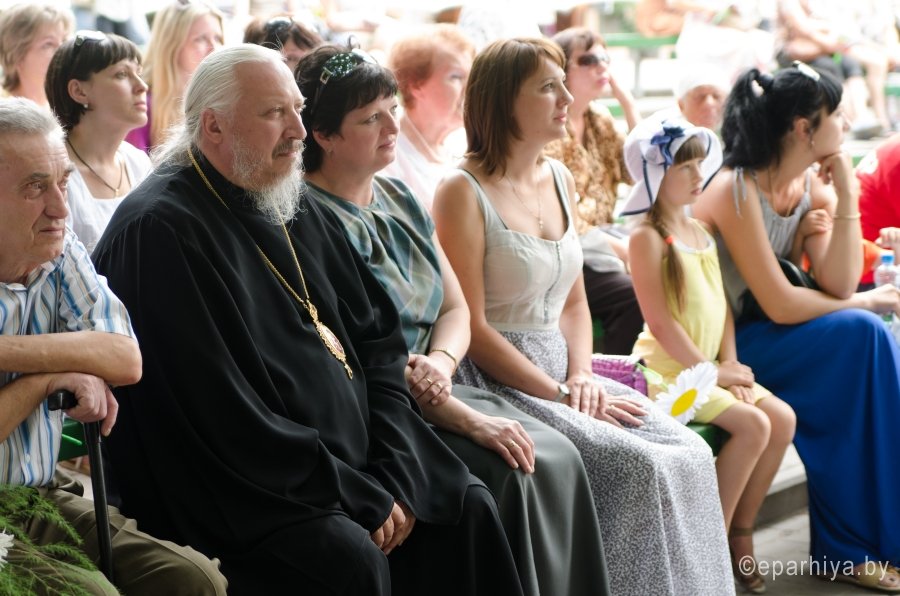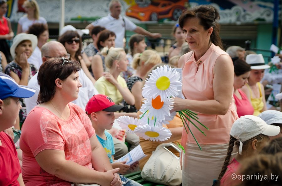 8 июля 2015г., Преосвященнейший Стефан, совместно с директором Гомельского городского центра социального обслуживания населения Мазениной Натальей Ивановной принял участие в мероприятиях, посвященных Дню святых благоверных князей Петра и Февронии, проходивших на летней эстраде Гомельского дворцово-паркового ансамбля. В ходе мероприятий были подведены итоги городского конкурса детского творчества «Ромашка — символ семьи, любви и верности». В конкурсе приняли активное участие детские дошкольные учреждения г.Гомеля. На праздничный концерт были приглашены не только участники детского конкурса. Главными гостями праздника стали многодетные и неполные семьи, а также семьи, которые воспитывают детей-инвалидов.почетными гостями праздника стали две пары. Одна из них собирается жениться этой осенью, вторая в этом году отметила золотой юбилей и с удовольствием поделилась секретами крепкого союза. |