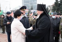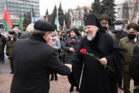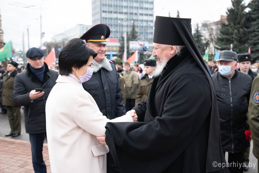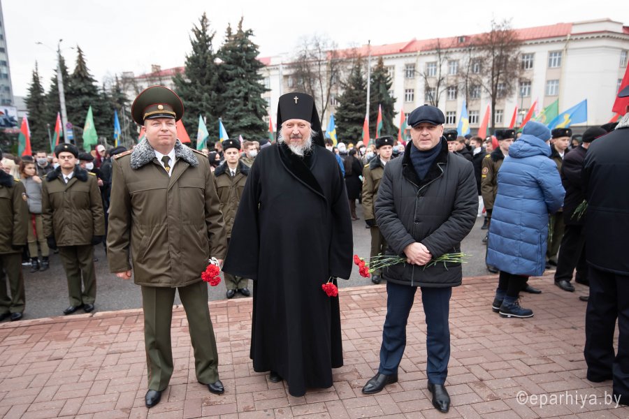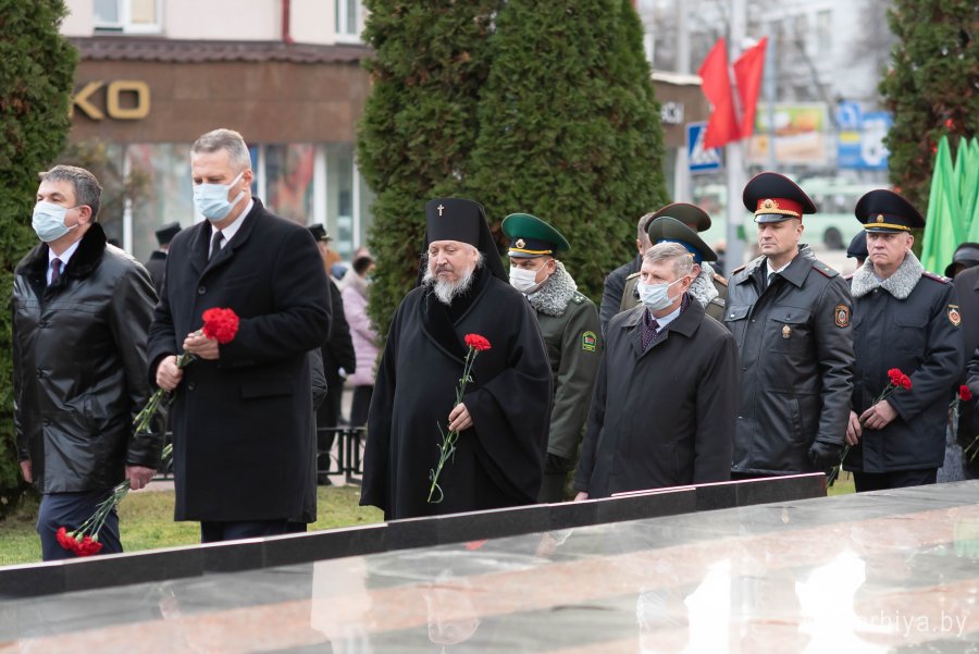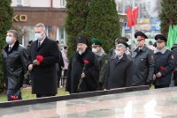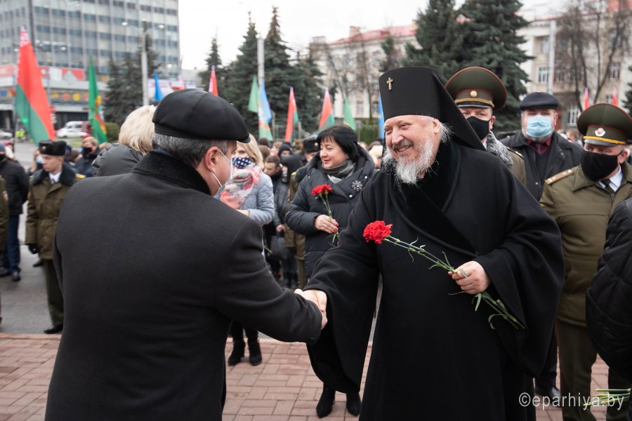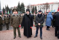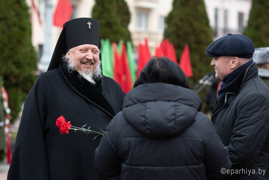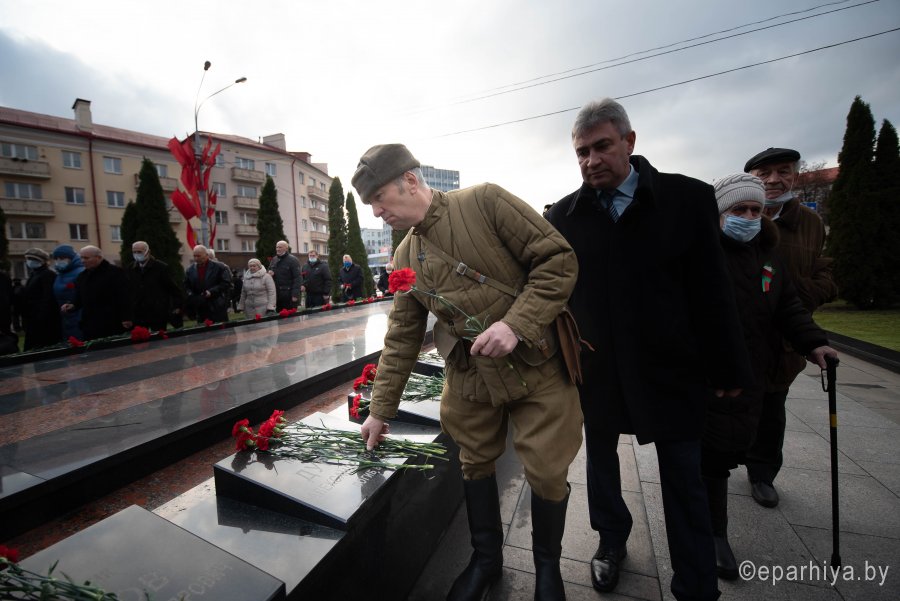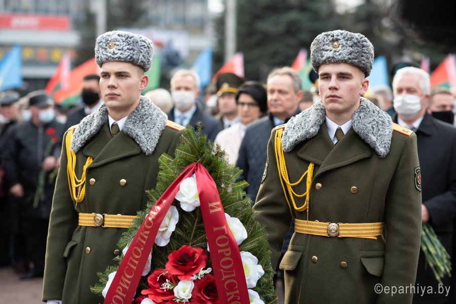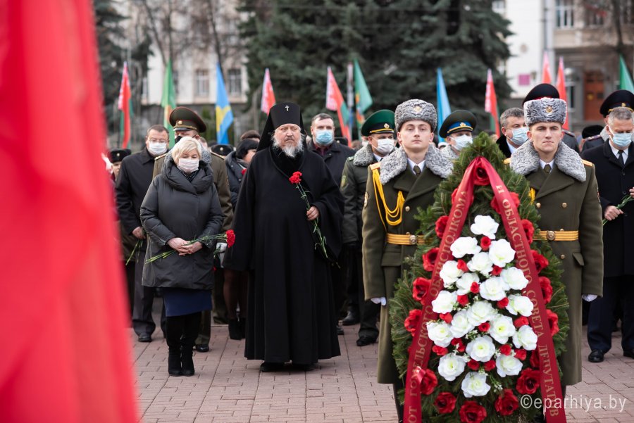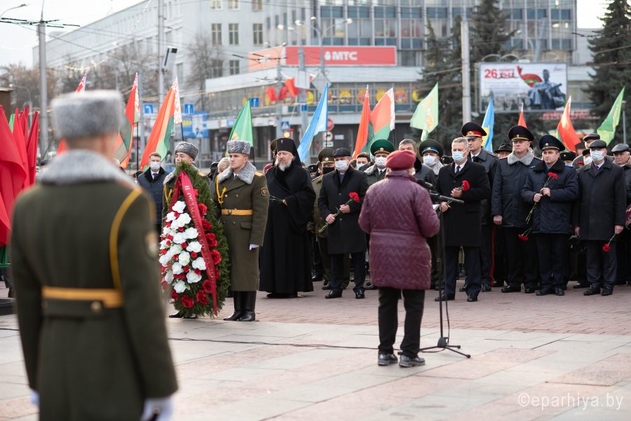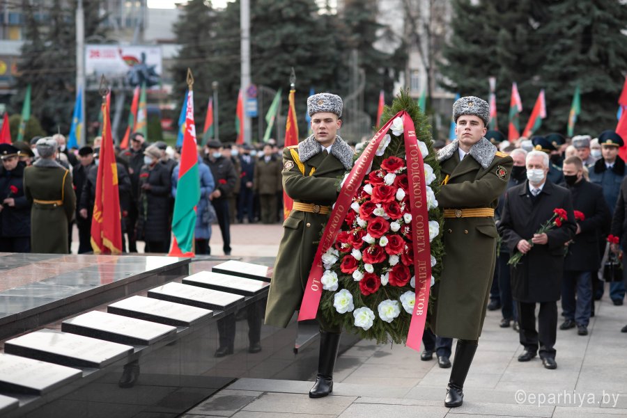 В Гомеле сегодня вспоминают события 77-летней давности. 26 ноября 1943 года город стал первым областным центром Беларуси, освобожденным от немецко-фашистских захватчиков. Тогда свои жизни за свободу Гомеля отдали более 20 тысяч красноармейцев. Победу помогали приближать и партизанские соединения. Точку в сражениях бойцы поставили на берегах реки Сож. Высокопреосвященнейший Стефан, архиепископ Гомельский и Жлобинский, принял участие в возложения цветов на главном митинге Гомеля у Вечного огня и братской могилы советских воинов и подпольщиков. Здесь ветераны и молодое поколение возложили живые цветы в память об освободителях Гомеля и тех, кто поднимал его из руин. На площади Труда собрались руководство области и города, депутаты, ветераны войны и труда, военнослужащие, студенты, трудовые коллективы. |