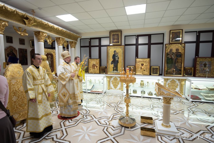 Домовой храм в Гомельском епархиальном управлении – уникальное пространство храма и музея, где иконы не просто археологический экспонат, вытянутый из древности, они отреставрированы, с них сняты слои поздних эпох, традиций. Храм благоукрашен коллекцией уникальных икон, отражающих богатство художественного, эстетического и духовного наследия белорусского народа. В пределах храмового пространства есть возможность совершать богослужения, проводить лекции, экскурсии и даже мастер классы, приобщая людей к богатой Белорусской духовной традиции. Божественную литургию 28 ноября 2020 г. совершил Высокопреосвященнейший Стефан, архиепископ Гомельский и Жлобинский. Высокопреосвященнейшему сослужили: секретарь Гомельской епархии и настоятель храма протоиерей Георгий Алампиев, а так же духовенство епархии. За богослужением молился викарий Гомельской епархии, епископ Светлогорский Амвросий. На литургии были вознесены сугубые молитвенные прошения о даровании мира белорусскому народу и прекращении распространения вредоносного поветрия. По окончании богослужения владыка Стефан поздравил прихожан и духовенство с престольным праздником, причастников с принятием Святых Христовых Таин, обратился к молящимся со словами назидания и преподал верующим архипастырское благословение. В завершении литургии Преосвященные архипастыри, духовенство и миряне совершили литию по приснопамятному архимандриту Пионию (Ефременко) Архимандрит Пионий (Ефременко) был почитаем всем Гомельским округом и не только как старец-духовник. Каждый день на протяжении почти пяти десятилетий к нему приезжали сотни людей для того, чтобы поделиться с батюшкой своими бедами и радостями, спросить совета в трудных обстоятельствах, услышать его авторитетное пастырское слово. |