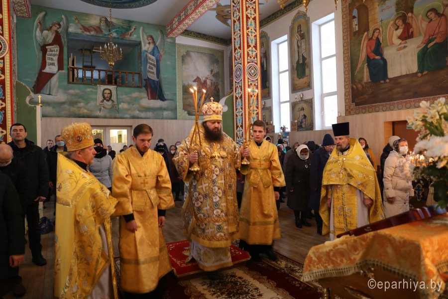 Божественную литургию в день памяти апостола и евангелиста Матфея 29 ноября 2020г. в храме святых апостолов Петра и Павла в г. Светлогорске возглавил Преосвященнейший Амвросий, епископ Светлогорский, викарий Гомельской епархии. Преосвященнейшему сослужили: настоятель храма протоиерей Владимир Семёнов и духовенство епархии. За богослужением были вознесены сугубые молитвенные прошения о даровании мира белорусскому народу и прекращении распространения вредоносного поветрия. По завершении Божественной литургии владыка Амвросий поздравил причастников с принятием Святых Христовых Таин и обратился к молящимся со словами архипастырского назидания. |