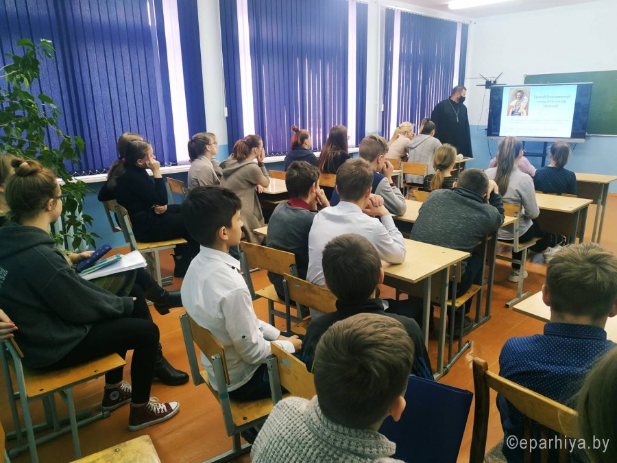 Шествие православных Покровских чтений в Жлобинском благочинии продолжается. Жажда учится, познавать новое всегда присутствует в человеке. И самое лучшее, когда это духовная жажда. Ученики ГУО «Коротковичская средняя школа Жлобинского района» встретились с клириком храма святого преподобного Серафима Саровского иереем Михаилом Маркосяном. Священник рассказал ребятам о Царице Небесной, об иконах с изображением Богородицы и о праздновании 550-летия обретения Жировицкого образа Богоматери. А настоятель храма Всех Святых аг. Пиревичи иерей Василий Терешков рассказал учащимся ГУО «Староруднянском детском саду-средней школе Жлобинского района» о земной жизни благоверного князя Александра Невского. Она заставляет всех нас задуматься не только о роли нравственности в политике, но и о том, как человек может послужить Богу в том звании, в котором он призван. Материал предоставлен Жлобинским благочинническим округом