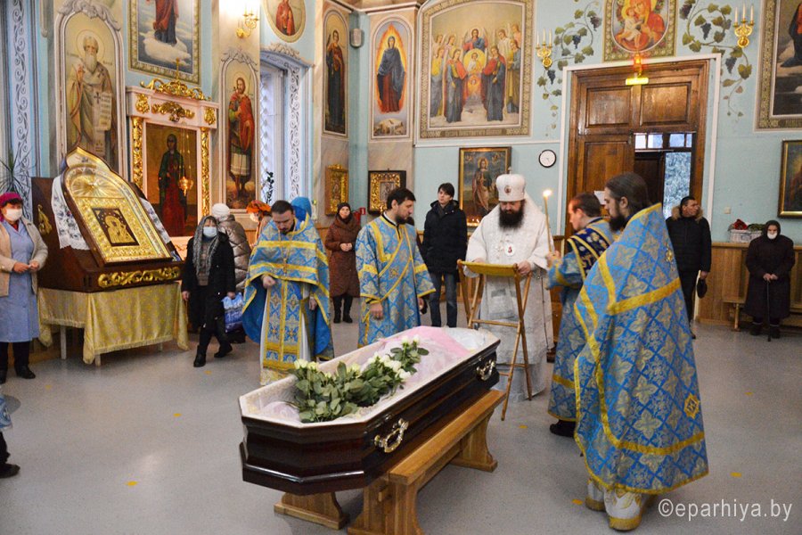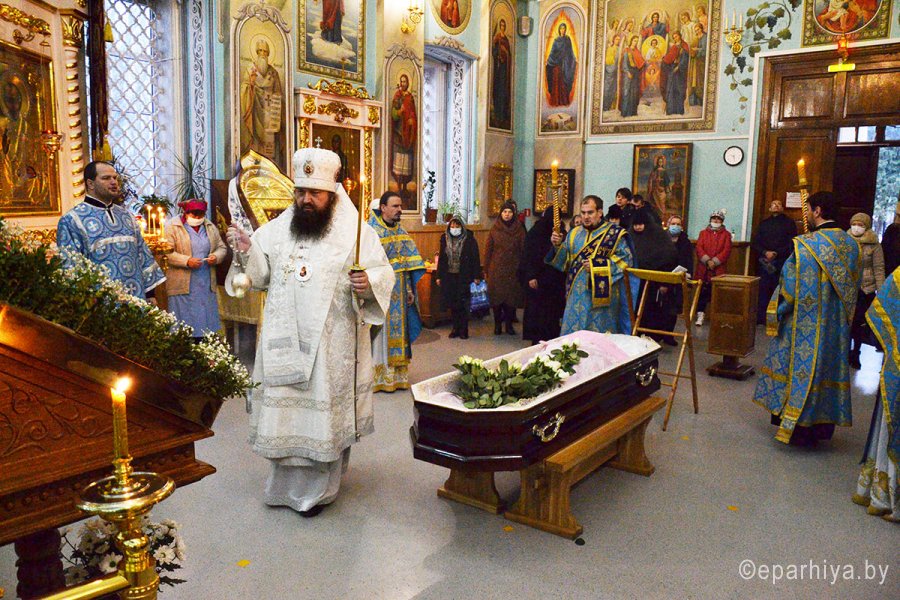 5 декабря, в день попразднства Введения во храм Пресвятой Богородицы, епископ Светлогорский Амвросий, викарий Гомельской епархии, возглавил Божественную литургию в кафедральном соборе святых апостолов Петра и Павла в г. Гомеле. Преосвященному сослужило духовенство собора. За богослужением владыка помянул приснопамятного Патриарха Московского и всея Руси Алексия II (+5.12.2008), а также молился о мире и благополучии белорусского народа и прекращении распространения пандемии. По окончании Литургии епископ Амвросий совершил отпевание новопреставленной рабы Божией Манефы, Красько Манефы Дмитриевны (1941 - 2020), долгие годы несшей послушания бухгалтера в кафедральном соборе и Никольском мужском монастыре. С почившей простились и сестры Тихвинского женского монастыря в г.Гомеле во главе с игуменией Верой (Афонькиной). Пресс-служба Никольского монастыря