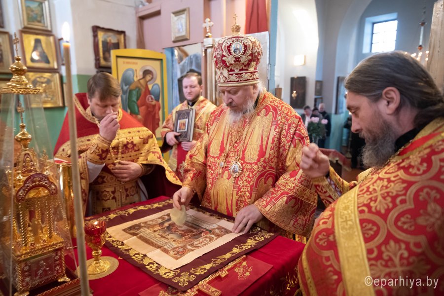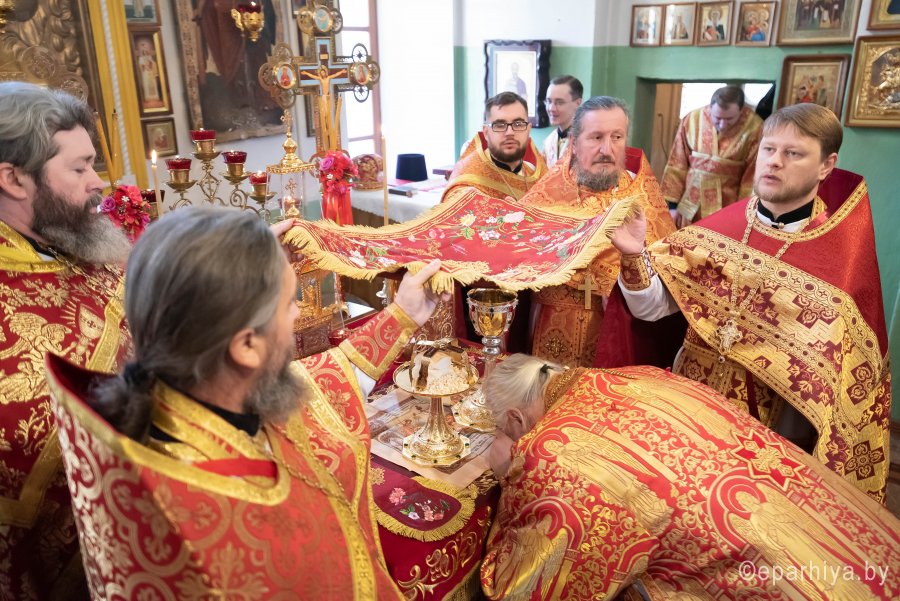 Божественную литургию в день памяти святой великомученицы Екатерины 7 декабря 2020г. Высокопреосвященнейший Стефан, архиепископ Гомельский и Жлобинский, совершил в одноименном храме д.Гадичево. Высокопреосвященному сослужили: секретарь Гомельской епархии протоиерей Георгий Алампиев, настоятель прихода протоиерей Сергий Каменщиков и духовенство округа. Во время Божественной литургии были вознесены сугубые молитвенные прошения о даровании мира белорусскому народу и прекращении распространения вредоносного поветрия. В завершение богослужения архиепископ Стефан и сослужащие священнослужители совершили чин славления великомученице Екатерине. По окончании богослужения Высокопреосвященный Стефан поздравил прихожан и духовенство с престольным праздником, причастников с принятием Святых Христовых Таин и обратился к молящимся со словами архипастырского назидания. Святая Екатерина родилась в Александрии во второй половине третьего столетия. Происходила она из знатного рода и отличалась светлым умом, ученостью и красотой. Многие богатые и знатные женихи искали ее руки, а мать и родные уговаривали ее согласиться на брак. Но Екатерина медлила с ответом и говорила своим близким: «Если хотите, чтобы я вышла замуж, то найдите мне юношу, подобного мне по красоте и учености». Бог так устроил, что Екатерина познакомилась с одним старцем-пустынником, человеком светлого ума и праведной жизни. Обсуждая с Екатериной достоинства ее поклонников, старец сказал: «Я знаю Жениха, который во всем превосходит тебя. Нет ему подобного». Потом он дал ей икону Пресвятой Девы, обещал, что она поможет ей увидеть необыкновенного Жениха. В ближайшую ночь представилось Екатерине в легком сне, что Небесная Царица, окруженная ангелами, стоит перед ней и держит на руках Отрока, сияющего как солнце. Напрасно старалась Екатерина взглянуть на Его лицо: Он отворачивался от нее. «Не презирай Твоего создания, — молила Божия Матерь своего Сына, — скажи ей, что она должна сделать, чтобы увидеть Твой светлый лик». «Пусть она вернется к старцу и узнает от него», — ответил Отрок. Чудный сон глубоко поразил девушку. Как только настало утро, она поспешила к старцу, припала к ногам его и просила у него совета. Старец подробно объяснил ей истинную веру, рассказал о райском блаженстве праведников и о гибели грешников. Мудрая дева поняла превосходство христианской веры над языческой, поверила в Иисуса Христа как Сына Божия и приняла святое крещение. После крещения божественный свет проник в нее и наполнил ее великой радостью. Когда Екатерина с обновленной душой возвратилась домой, она долго молилась, благодаря Бога за милость, оказанную ей. Заснув во время молитвы, она снова увидела Матерь Божию. Теперь Божественный Отрок милостиво взирал на нее. Пресвятая Дева взяла правую руку девицы, а Отрок надел ей чудный перстень, сказав: «Не знай жениха земного». Екатерина поняла, что с этого момента она обручена Христу и проснулась с еще большей радостью на сердце. После этого она совершенно переменилась стала скромной, кроткой и милостивой. Она стала часто молиться Богу, прося руководства и помощи. Одна цель воодушевляла ее: жить для Христа. В скором времени в Александрию прибыл Максимиан (286–305 гг.), соправитель императора Диоклетиана. Он разослал вестников по городам Египта со