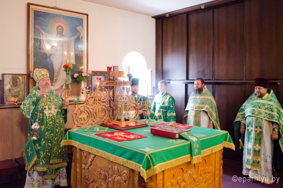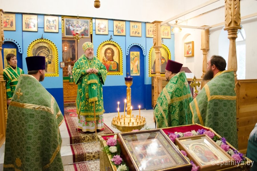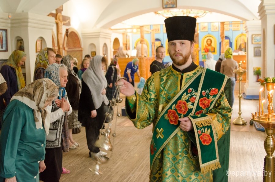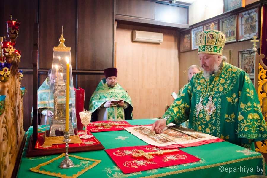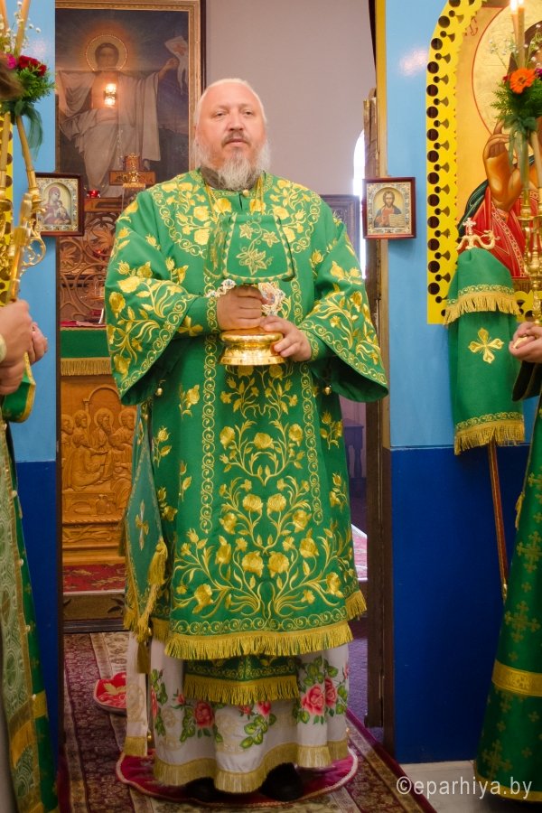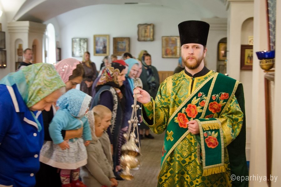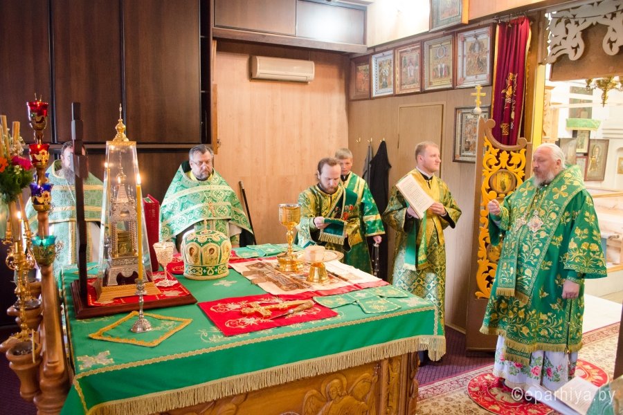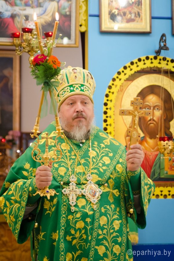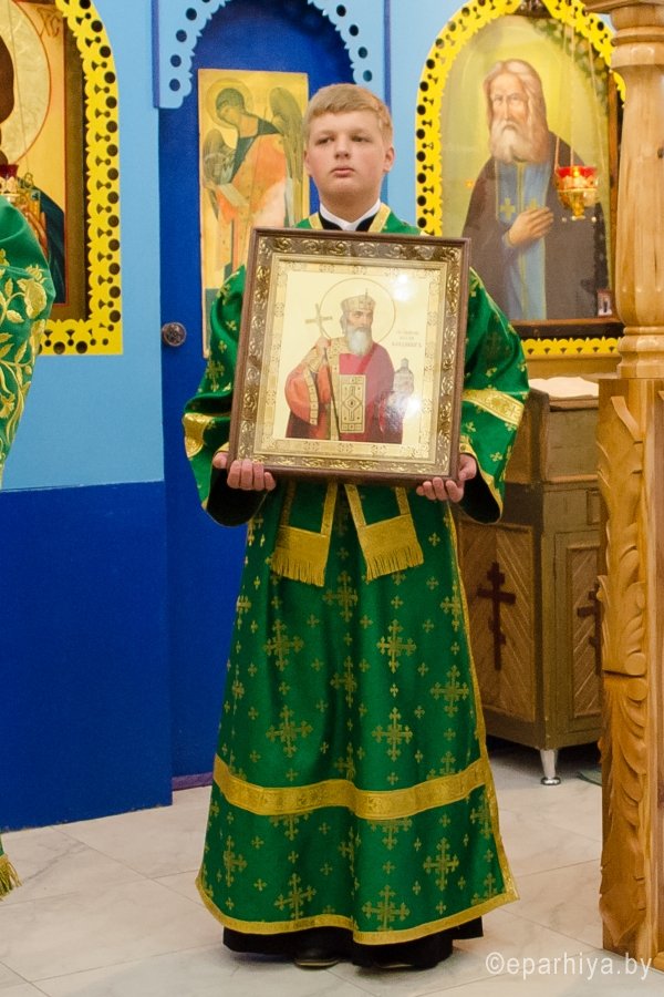 11 июля 2015г., в день памяти Сергия и Германа Валаамских чудотворцев, Преосвященнейший Стефан возглавил Божественную литургию в храме прп. Серафима Саровского г.Гомеля. Преосвященному сослужили: благочинный Гомельского районного округа протоиерей Сергий Леоньков и духовенство епархии. По окончании богослужения Владыка поздравил протоиерея Сергия Леонькова с Днем Ангела и преподнес в дар образ равноапостольного князя Владимира. |