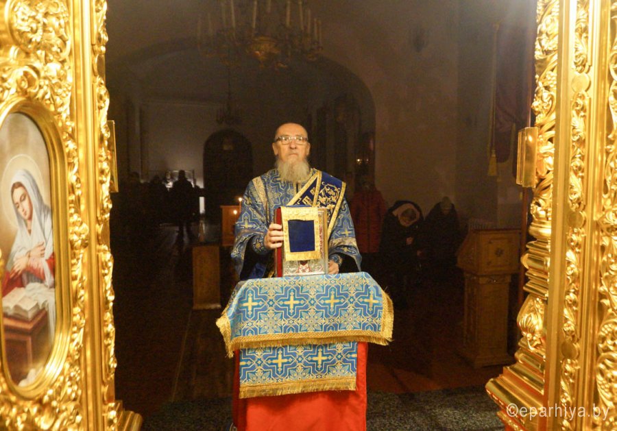 8 декабря, в день отдания праздника Введения во храм Пресвятой Богородицы, епископ Светлогорский Амвросий, викарий Гомельской епархии, совершил Божественную литургию в Никольском мужском монастыре города Гомеля. Его Преосвященству сослужили братия Никольской обители в священном сане. За богослужением владыка Амвросий вознес молитвы о даровании мира и благополучия белорусскому народу и о прекращении пандемии. |