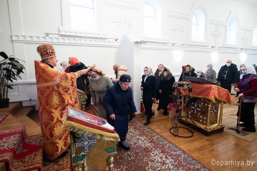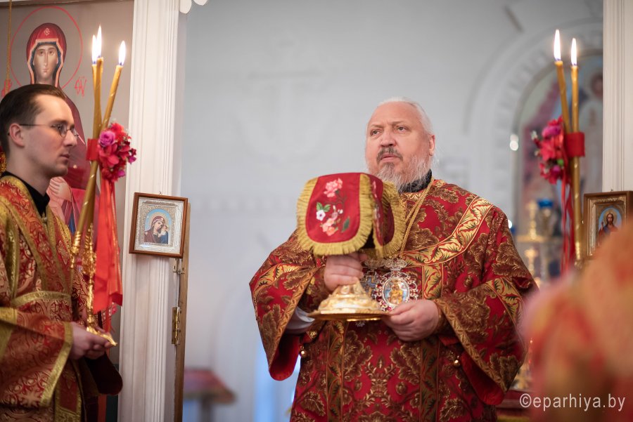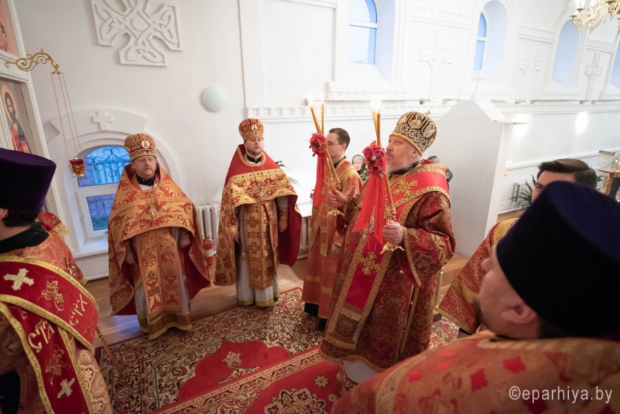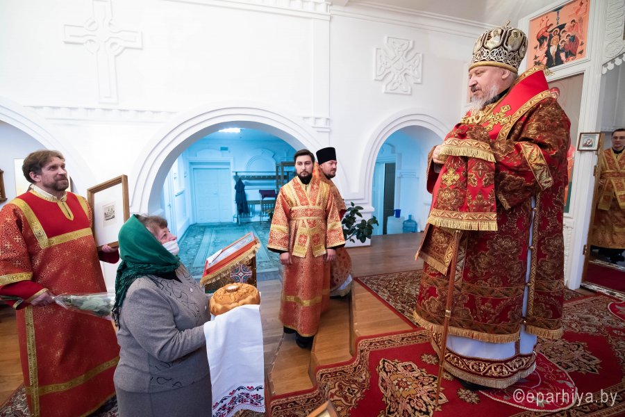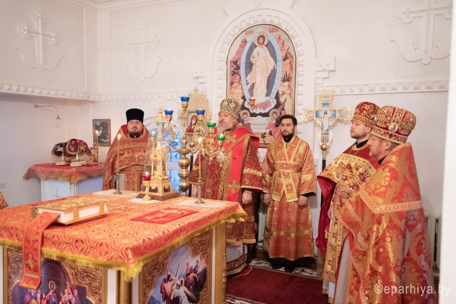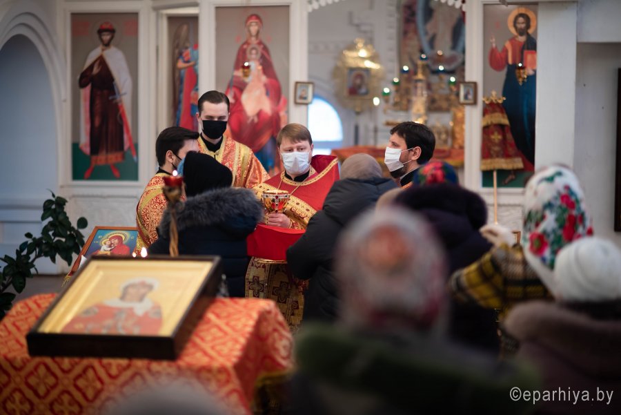 Божественную литургию в день памяти великомученицы Варвары 17 декабря 2020г. Высокопреосвященнейший Стефан, архиепископ Гомельский и Жлобинский, совершил в храме, освященном в честь святой великомученицы в аг. Боровики Светлогорского района. Высокопреосвященнейшему сослужили: секретарь Гомельской епархии протоиерей Георгий Алампиев, благочинный Светлогорского округа протоиерей Александр Кисель и духовенство епархии. Во время Божественной литургии были вознесены сугубые молитвенные прошения о даровании мира белорусскому народу и прекращении распространения вредоносного поветрия. По окончании богослужения было совершено славление великомученице Варваре, после чего владыка Стефан поздравил духовенство и мирян с престольным праздником и обратился ко всем со словом проповеди. Высокопреосвященный Стефан поздравил причастников с принятием Святых Христовых Таин и преподал всем архипастырское благословение. Святая великомученица Варвара родилась в г. Илиополе (нынешней Сирии) при императоре Максимине (305-311 гг.) в знатной языческой семье. Отец Варвары Диоскор, рано лишившись своей супруги, был страстно привязан к своей единственной дочери. Чтобы уберечь красивую девушку от посторонних взоров и вместе с тем лишить ее общения с христианами, он построил для дочери специальный замок, откуда она выходила только с разрешения отца. Созерцая с высоты башни красоту Божиего мира. Варвара часто испытывала желание узнать его истинного Творца. Когда приставленные к ней воспитательницы говорили, что мир создан богами, которых почитает ее отец, то она мысленно говорила: «Боги, которых почитает мой отец, сделаны руками человеческими. Как эти боги могли создать такое пресветлое небо и такую красоту земную? Един должен быть такой Бог, Которого создала не рука человеческая, но Сам Он, имеющий собственное бытие».