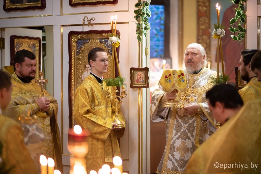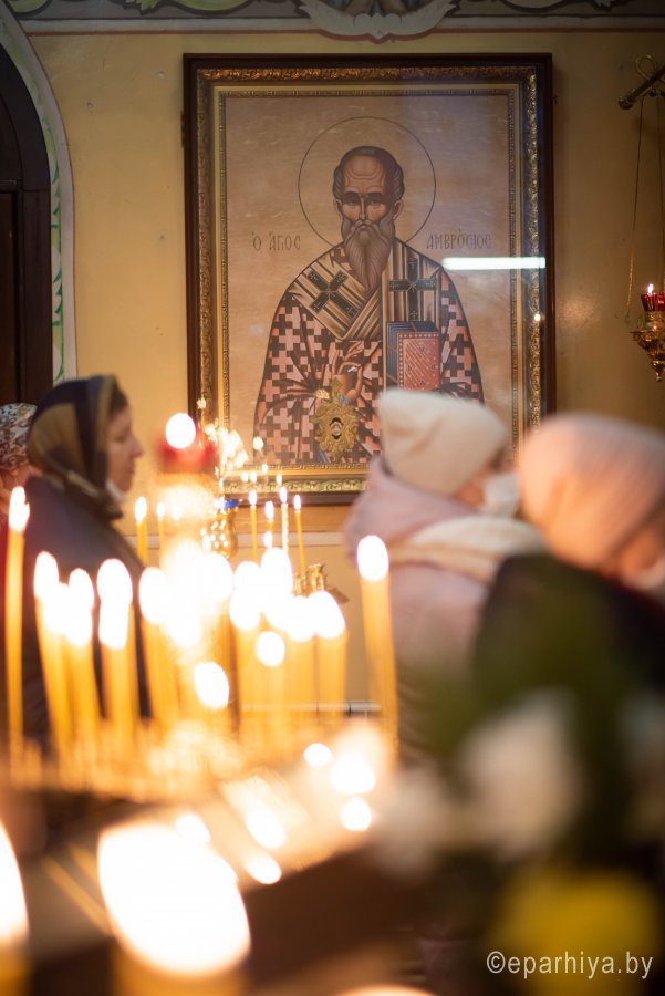 Православная церковь 20 декабря чтит память ревностного проповедника и мужественного защитника христианской веры, почитаемого во всем христианском мире как великого святителя Церкви Христовой и одного из крупнейших богословов своего времени - святителя Амвросия, епископа Медиоланского. Божественную литургию в день памяти святителя Амвросия, епископа Медиоланского в храме Преображения Господня в г. Гомеле 20 декабря 2020г. совершил Высокопреосвященнейший Стефан, архиепископ Гомельский и Жлобинский. Высокопреосвященнейшему сослужили: секретарь Гомельской епархии протоиерей Георгий Алампиев, настоятель прихода протоиерей Олег Кострома и духовенство епархии. Во время Литургии были вознесены сугубые молитвенные прошения о даровании мира белорусскому народу и о прекращении распространения вредоносного поветрия. По окончании богослужения владыка Стефан поздравил духовенство и мирян с праздником и обратился ко всем со словом проповеди. Высокопреосвященнейший Стефан поздравил причастников с принятием Святых Христовых Таин и преподал всем архипастырское благословение. Икона с частицей мощей святого Амвросия Медиоланского, находящаяся на постоянном хранении в храме Преображения Господня в г.Гомеле, является одной из наиболее чтимых святынь храма. На гомельскую землю святыня была доставлена в 2011 году, после церемонии передачи частицы мощей, состоявшейся в итальянском городе Ориджио. Проходила она по благословению Высокопреосвященнейшего Аристарха, Архиепископа Гомельского и Жлобинского, а делегацию Гомельской епархии возглавлял руководитель епархиального информационного отдела, настоятель прихода храма Преображения Господня протоиерей Олег Кострома. Частица мощей святого Амвросия, является редкой святыней для православного мира и единственной Беларуси. Святой Амвросий родился в 340 году в северной Италии в богатой и знатной римской семье. Получив прекрасное юридическое образование, он скоро возвысился и с 370 года занял должность консульского профекта (правителя) провинций Лигурии и Эмилии. Однажды в Медиолане (современном Милане), главном городе Лигурии, происходили выборы епископа, и между православными и арианами шли горячие споры. Амвросий явился в храм для водворения порядка, и вдруг какой-то голос, как бы детский, прозвучал: «Амвросий — епископ». Народ и сам император Валентин увидели в этом Божие избрание. Напрасно Амвросий, бывший тогда еще в числе оглашенных, готовящихся ко крещению, отговаривался и даже скрылся из Милана. Он вынужден был согласиться на единодушное избрание, принял крещение, и в течение восьми дней прошел все церковные степени и был посвящен во епископа (374 г.).