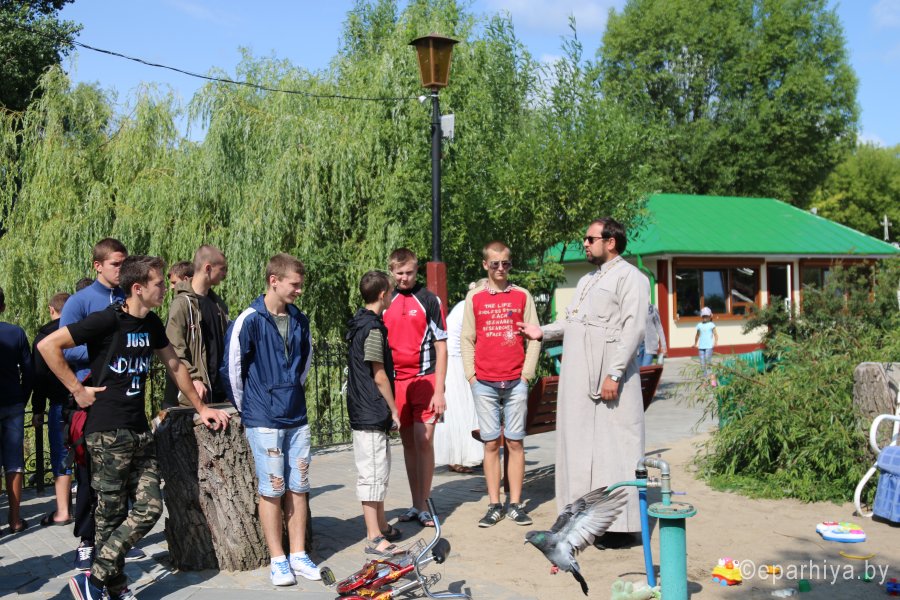 Оздоровительный лагерь «Курсант-ТЫ» для трудных подростков традиционно реализуется при поддержке прокуратуры Гомельской области и комиссии по делам несовершеннолетних облисполкома, направлен на создание дополнительных возможностей для организации позитивного досуга, воспитания и обучения подростков, требующих повышенного педагогического внимания. Подростки во время пребывания в лагере будут реально приобщаться к жизни военно-транспортного факультета БелГУТа. По благословению Преосвященнейшего Стефана 3 июля 2015 года, в рамках проекта был обозначен как День Православия. Подростки познакомились с историей храма Святого Архангела Михаила г. Гомеля, а ведь история храма очень интересна. Храм был построен по ходатайству епископа Могилевского Варлаама на средства Священного Синода, освящен 27 декабря 1909 года. После аварии на Чернобыльской АЭС в 1996 г. деревня Вылево оказалась в зоне заражения, жители деревни были выселены, и храм стал пустовать. В 1997 году было принято постановление Совета Министров Республики Беларусь о переносе памятника архитектуры деревянного зодчества – храма Святого Архистратига Михаила из д. Вылево Добрушского района в г. Гомель. Работы по переносу храма проводились по благословению Высокопреосвященнейшего Аристарха Архиепископа Гомельского и Жлобинского, при непосредственном участии Высшего командно-инженерного училища МЧС Республики Беларусь. Именно поэтому была интересной, и познавательной экскурсия по территории храма. В ходе беседы с ребятами протоиерей Игорь Ольшанов, руководитель отдела по взаимодействию с Вооружёнными Силами и правоохранительными органами Гомельской епархии, настоятель храма Святого Архангела Михаила отметил: «Архангел Михаил – один из высших ангелов, принимающий самое близкое участие в судьбах Церкви. Церковь почитает Архангела Михаила как защитника веры и борца против ересей и всякого зла. Поэтому встреча наша с вами именно здесь неслучайна. Я надеюсь, что вы, как и Архангел Михаил, выйдете из всех своих жизненных проблем победителями, ибо «... не презри мене грешнаго, молящегося тебе о помощи и заступлении твоем в веце сем и в будущем, но сподоби мя тамо купно с тобою славити Отца и Сына, и Святого Духа во веки веков. Аминь». Особым моментом во встрече со священником была непринужденная беседа, в ходе которой ребята смогли задать интересующие их вопросы. Конечно, ведь, в каждом, даже трудном подростке, растет мужчина, а значит воин. Но на чьей стороне будет этот воин, и ради чего он будет воевать…? Также в программе встречи состоялись следующие мероприятия: - встреча с членами мотоклуба «Железные братья» – скорость и адреналин – это ответственность, а главное, ответственность за себя и тех, кто с тобой рядом. Представители клуба рассказали подросткам о мероприятиях и акциях, в которых они участвуют, а также планах на будущее. И, конечно же, прокатили ребят «с ветерком»; - общение с сотрудниками поисково-спасательного отряда «Симуран» – кто есть кто в экстремальной ситуации, вопросы организаторов покажут. «Симурановцы» преподали урок выживания, показали, как можно помочь себе и своим близким, ведь в первую очередь нужно рассчитывать на собственные силы. «Цель нашего проекта – показать вам, ребята, другую жизнь. Ведь реализовывать себя можно по-разному. Жизнь в м