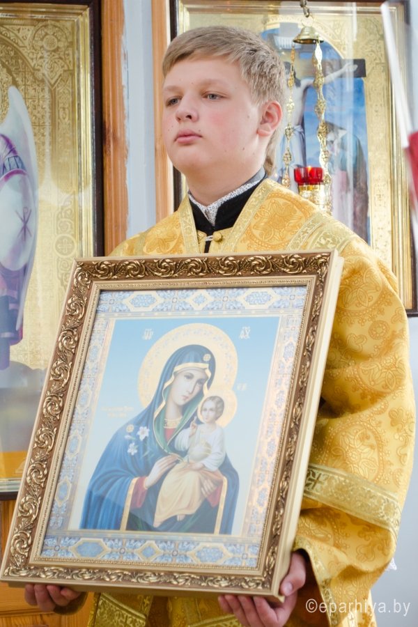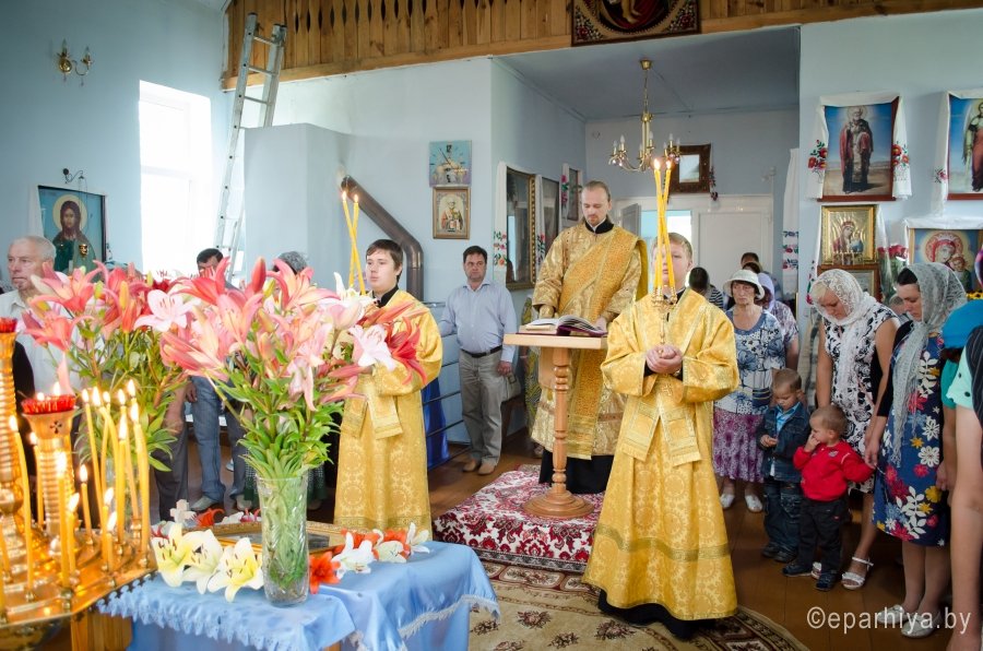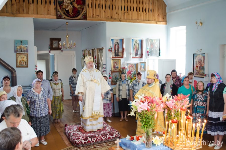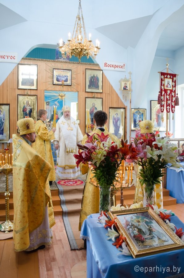 19 июня 2015г., в Неделю 7-ю по Пятидесятнице, Преосвященнейший Стефан возглавил Божественную литургию в храме Покрова Пресвятой Богородицы д.Телеши Гомельского районного благочинного округа. Преосвященнейшему сослужили: секретарь Гомельской епархии протоиерей Георгий Алампиев и настоятель храма протоиерей Сергий Вараксин. За богослужением Владыка поздравил настоятеля храма с прошедшими Днем тезоименитства и 50-летним юбилеем и преподнес в дар икону Пресвятой Богородицы. По окончании литургии Владыка пообщался с прихожанами и благословил их Святым Образом. |
