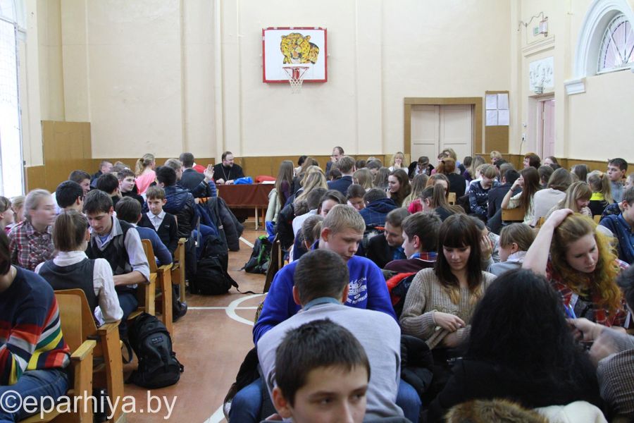 12 декабря 2014 года по благословению Преосвященнейшего Стефана, епископа Гомельского и Жлобинского и благочинного Жлобинского округа протоиерея Василия Пилипенко в городе Жлобине впервые прошел православный турнир "Рождественская звезда" по игре " Что? Где? Когда?". Турнир был организован при поддержке Районного Отдела образования, ГУО "СШ№5" в лице преподавателя Погребецкого Сергея Петровича и Жлобинского благочиния в лице настоятеля приходя св.Василия Великого иерея Вячеслава Рябицы, иерея Павла Кулиша - клирика Свято-Троицкого собора, ответственного за образование в Жлобинском благочинии. На базе ГУО "СШ№5" собрались двадцать школьных команд из города и района . Победителей определяли в двух возрастных группах - старшая и младшая. Лучшие были награждены грамотами, а все команды батюшка благословил святым образом. |