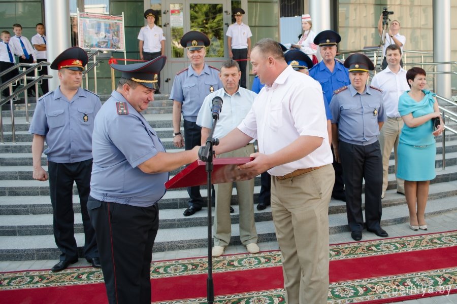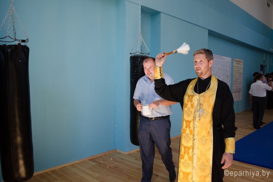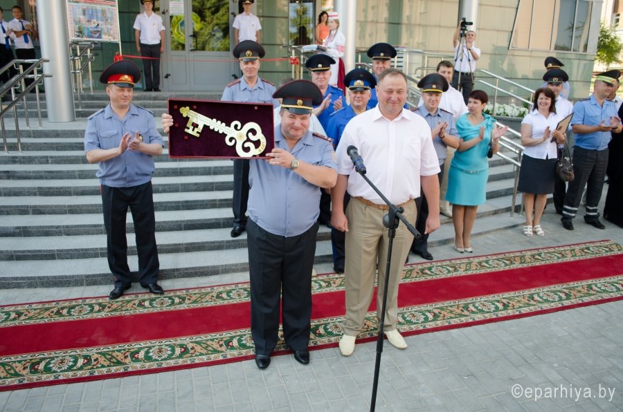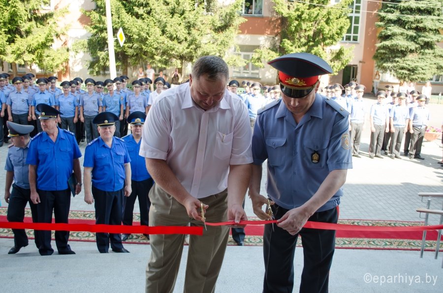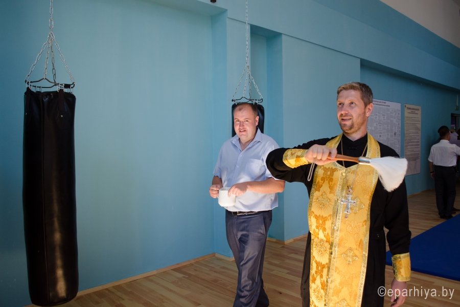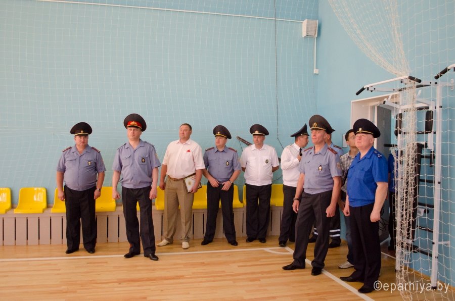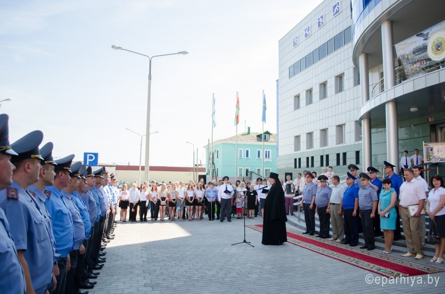 7 августа 2015г. Преосвященнейший Стефан в сопровождении эконома Гомельской епархии протоиерея Владимира Масалитина, принял участие в мероприятиях, посвященных открытию центра профессиональной подготовки и служебно-прикладных видов спорта Гомельского областного Управления Департамента охраны МВД РБ. В торжественном открытии новостройки приняли участие представители Министерства внутренних дел, силовых подразделений области, местных органов власти. После церемонии разрезания красной ленточки протоиерей Владимир Масалитин совершил чин освящения здания. |
