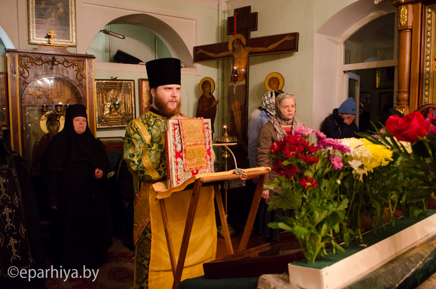 18 декабря 2014 г., в день памяти прп.Саввы Освященного, Преосвященнейший Стефан возглавил Божественную литургию в Свято-Тихвинском женском монастыре. Преосвященнейшему сослужили: благочинный монастырей Гомельской епрахии архимандрит Амвросий Шевцов и духовенство обители. |