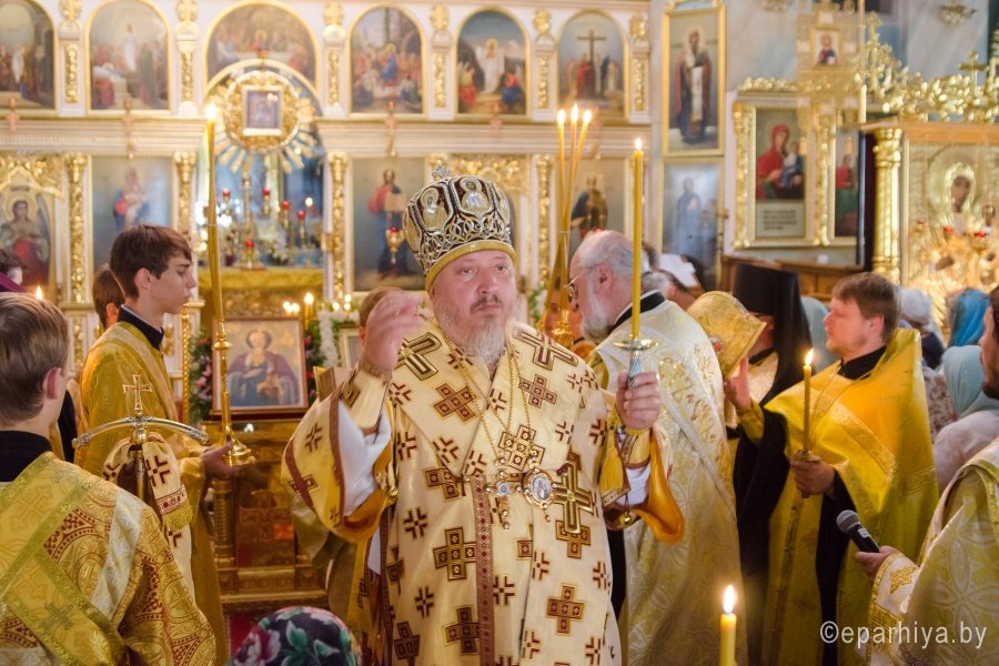 8 августа 2015г., в канун Недели 10-й по Пятидесятнице, дня памяти вмч. и целителя Пантелеимона, Преосвященнейший Стефан возглавил всенощное бдение в Свято-Петро-Павловском кафедральном соборе г.Гомеля. Преосвященному сослужили: секретарь Гомельской епархии протоиерей Георгий Алампиев и духовенство собора. |