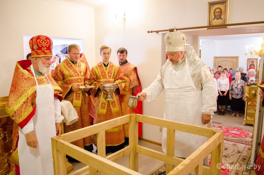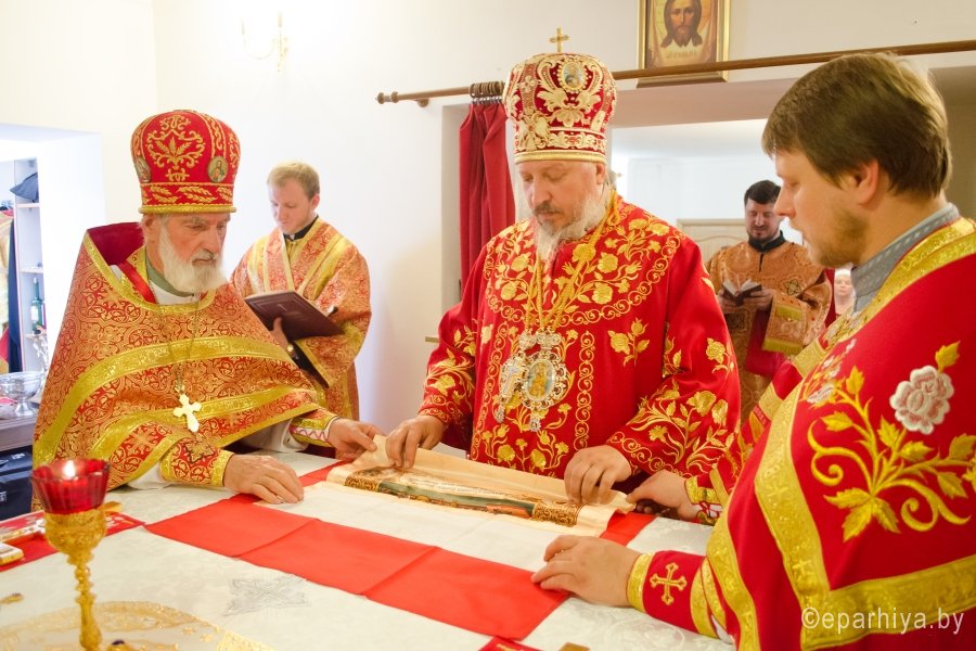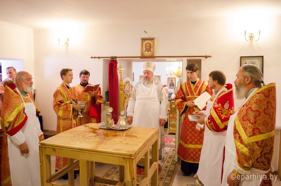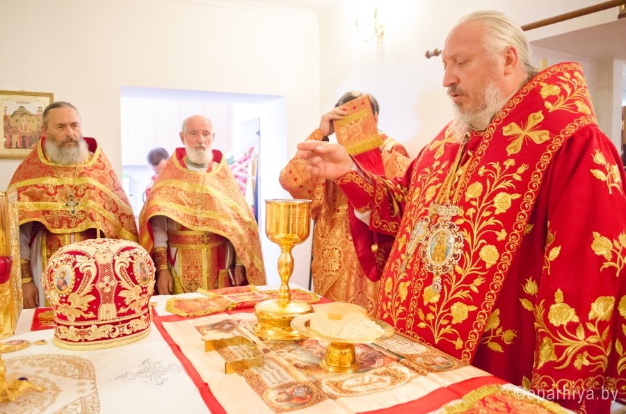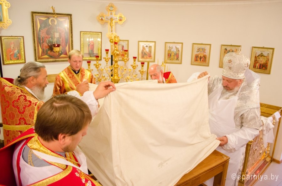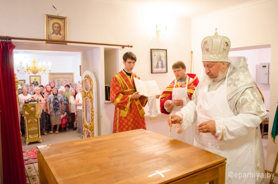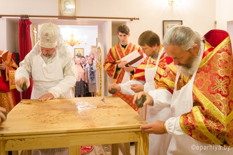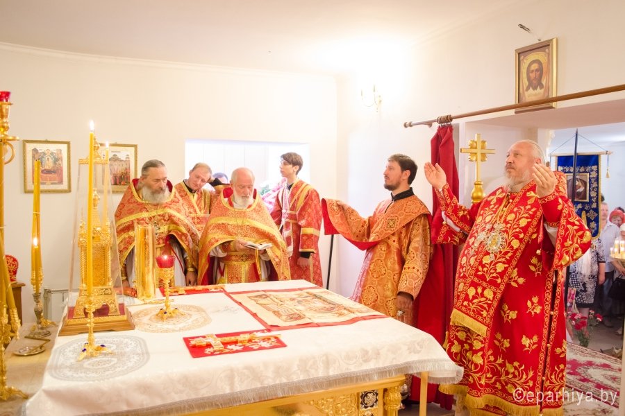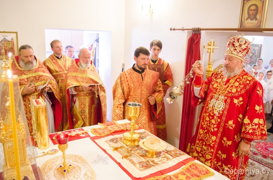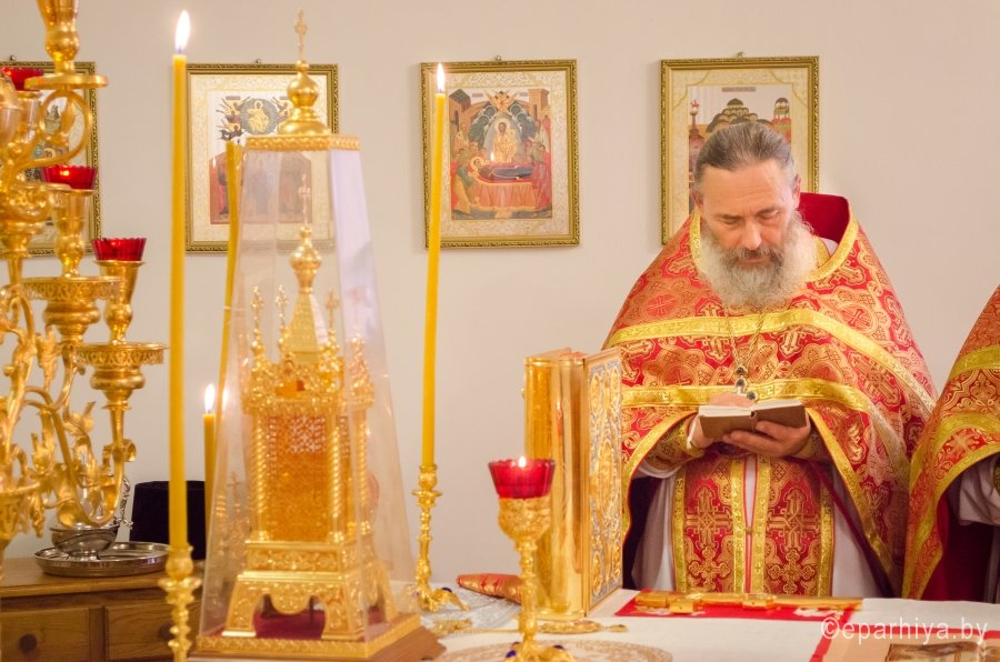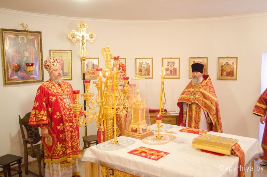 9 августа 2015г., в Неделю 10-ю по Пятидесятнице, день памяти вмч. и целителя Пантелеимона, Преосвященнейший Стефан возглавил Божественную литургию и совершил чин освящения криптовый храм в честь Космы и Дамиана комплекса в честь вмч. и целителя Пантелеимона г.Гомеля. Преосвященному сослужили: секретарь Гомельской епархии протоиерей Георгий Алампиев, благочинный Гомельского городского благочинного округа протоиерей Стефан Гладыщук и духовенство храма. |