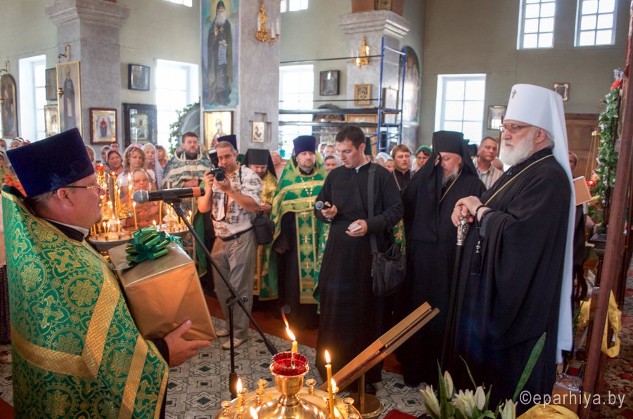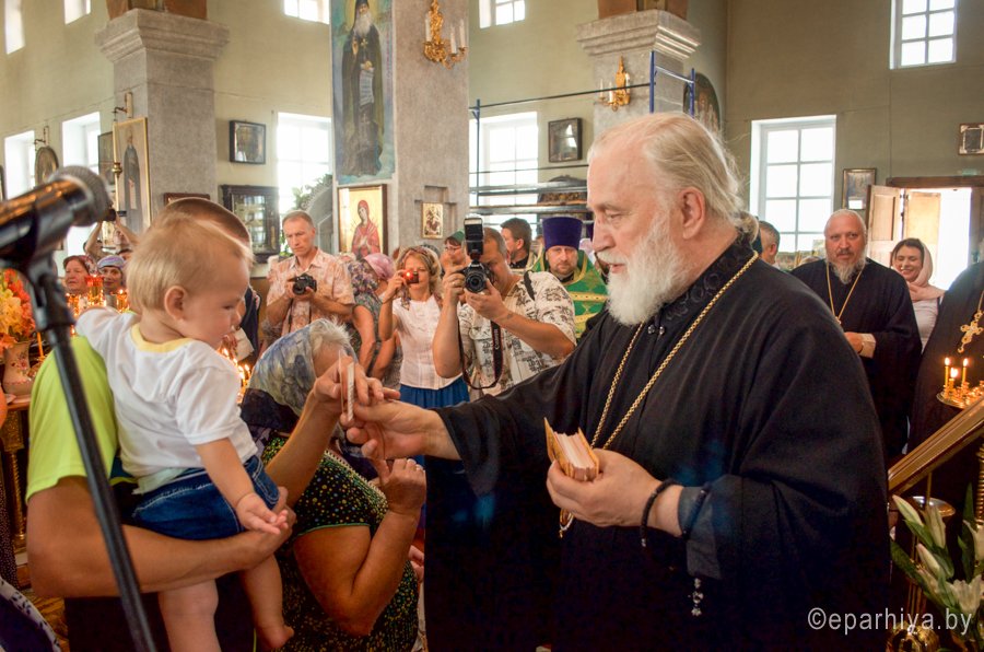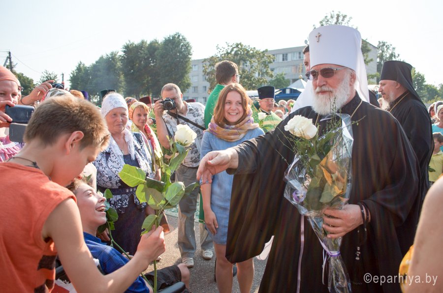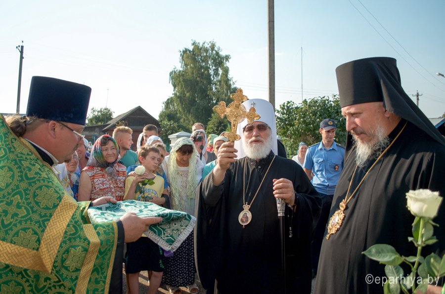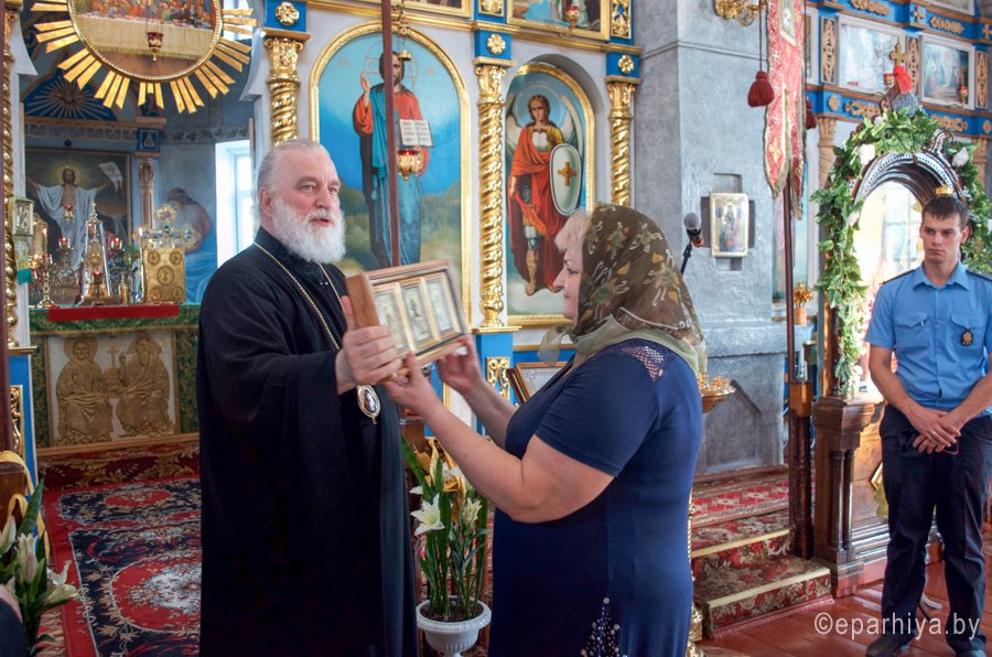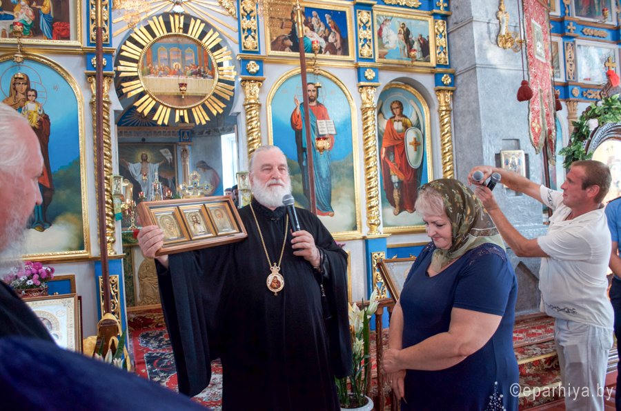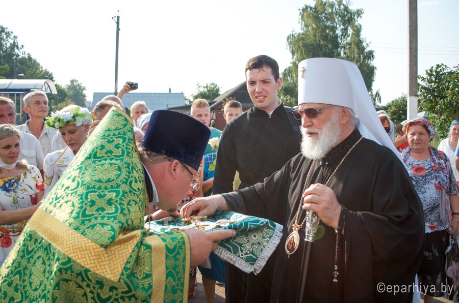 11 августа 2015г., в ходе своего визита на гомельщину, Высокопреосвященнейший митрополит Павел, Патриарший Экзарх всея Беларуси в сопровождении Преосвященнейшего Стефана, епископа Гомельского и Жлобинского посетил г.Добруш. На границе Добрушского и Ветковского районов со словами приветствия высокого гостя встретила председатель Добрушского районного исполнительного комитета Мохорева Ольга Федоровна и преподнесла в дар митрополиту Павлу, на память о пребывании на Добрушской земле, резной святой образ. После торжественной встречи Высокопреосвященнейший митрополит Павел посетил храм Святителя Николая Чудотворца в г.Добруш, где его встретил благочинный Добрушского округа протоиерей Алексей Пилипенко. В завершении визита Митрополит Павел обратился ко всем присутствующим со словами назидания, поблагодарил всех за теплую встречу и раздал всем присутствующим иконки со своим Архипастырским благословением. |
