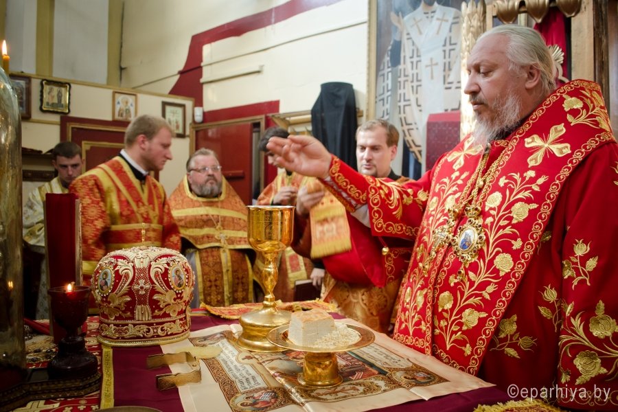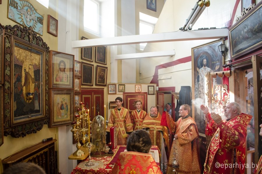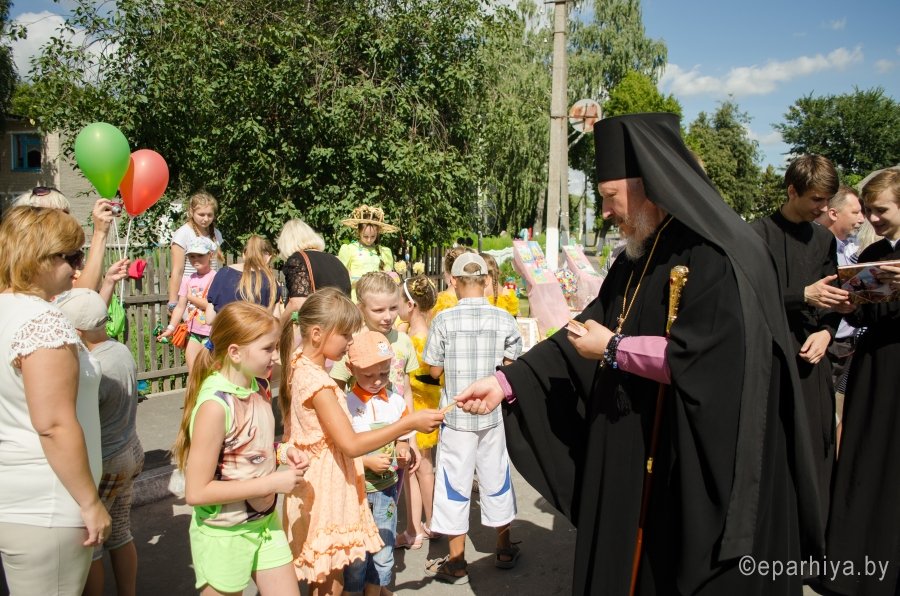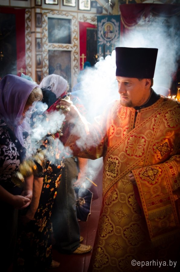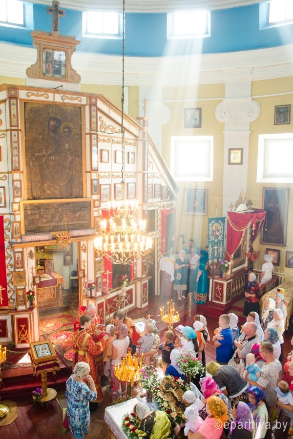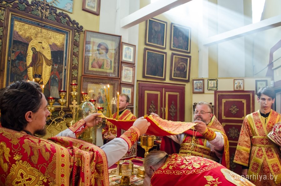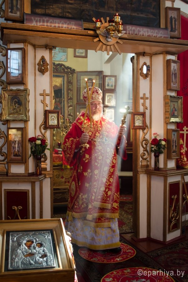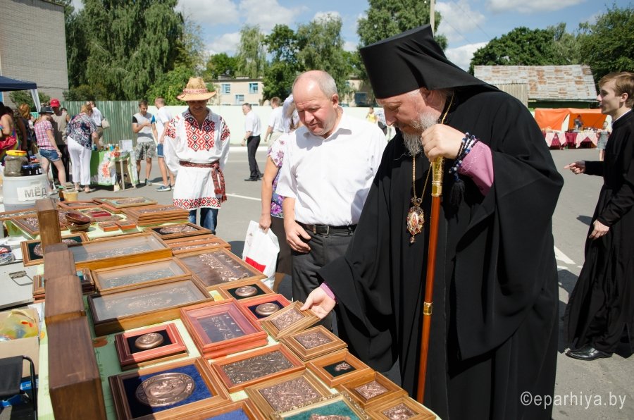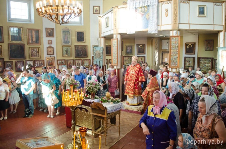 14 августа 2015г. Пресовященнейший Стефан, возглавил Божественную Литургию в храме Преображения Господня г.Чечерск. Владыке сослужили протоиерей Георгий Шмидов и духовенство храма. Во главе с Владыкой Стефаном, духовенство и прихожане храма встретили ковчег с частицей мощей святого равноапостольного князя Владимира. По завершению Богослужения Владыка Стефан обратился к прихожанам храма с проповедью, раздал иконки и освятил первый сбор меда, что принесли с собой прихожане к празднованию Происхождения (изнесение) честных древ Животворящего Креста Господня. Преосвященнейший Стефан, в ходе визита в храм Преображения Господня г. Чечерск, посетил праздничные мероприятия под названием "Край, где солнце золотится медом", которые были организованы в честь прибытия Крестного хода с частицей мощей святого равноапостольного князя Владимира и праздника называемого в народе "медовый спас". На празднике было организовано театрализованное выступление, широкая выставка-ярмарка прикладного творчества, выступил коллектив народной самодеятельности. Владыку Стефана сопровождали протоиерей Георгия Шмидова и представители городской администрации г. Чечерск. |