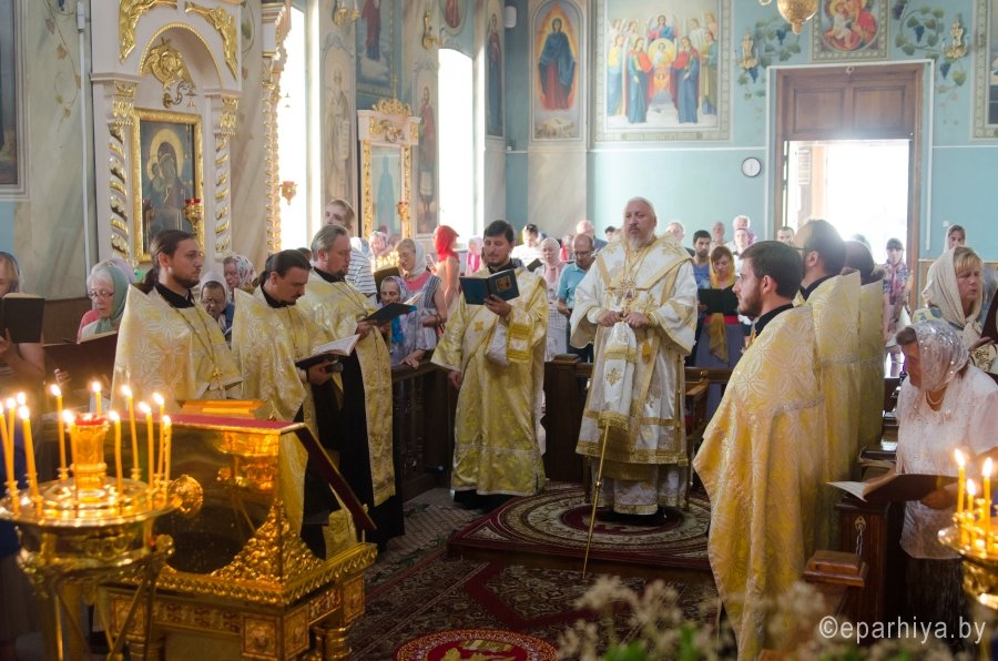 16 августа 2015г., Преосвященнейший Стефан, в сослужении духовенства собора, возглавил вечернее богослужение с чтением Акафиста Пресвятой Владычицы нашей Богородицы нараспев в Свято-Петро-Павловском кафедральном соборе города Гомеля. В завершении архиерейского служения Владыка обратился с архипастырский назиданием. |