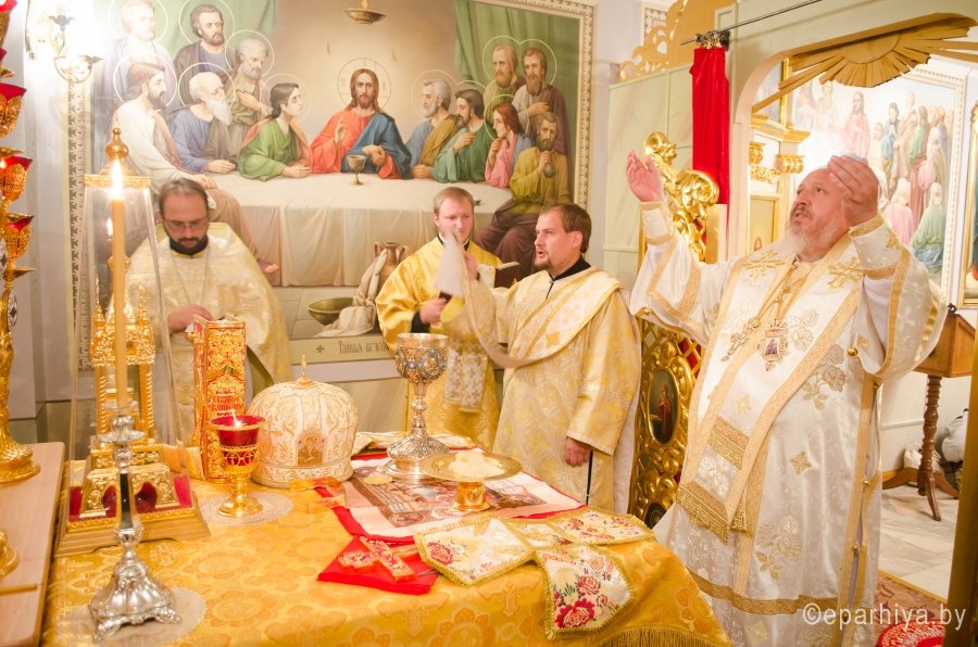 17 августа 2015 года, в криптовом храме Свято-Петро-Павловского собора города Гомеля была отслужена Божественная Литургия. Возглавил ее епископ Гомельский и Жлобинский Стефан в сослужении с духовенством Гомельской епархии. По окончании Литургии Владыка благословил всех молящихся святым образом. |