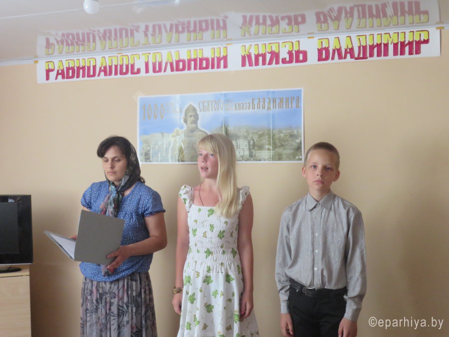 23 августа 2015 г. в соборе Святой Живоначальной Троицы г.п. Лоев, прихожане храма встретили частицу мощей равноапостольного князя Владимира. Святыня прибыла сюда с Крестным ходом посвященному 1000-летию преставления Крестителя Руси предварительно посетив Жлобин, Чечерск, Рогачев, Светлогрск и Речицу. Была отслужена Божественная Литургия, которую возглавил благочинный Лоевского округа настоятель собора Святой Живоначальной Троицы иерей Димитрий Чварков в сослужении духовенства собора, а затем состоялось чтение акафиста святому равноапостольному князю Владимиру. После того как верующие смогли приложиться к ковчегу с частицей мощей Крестителя Руси, все присутствующие были приглашены в здание Воскресной школы прихода, где прошло тематическое мероприятие: «Князь Владимир – просветитель Руси». Гости праздника смогли познакомиться с житием князя Владимира, услышать стихи и церковные песнопения. Воспитанники воскресной школы живописно запечатлели свое видение исторического события и, своими стараниями, организовали выставку художественных работ «Русь православная». В завершении праздника, настоятель собора Святой Живоначальной Троицы иерей Димитрий Чварков, обращаясь ко всем присутствующим сказал: «Мы, православные, должны быть благодарны нашим предкам – святому князю Владимиру и святой княгине Ольге, которые сделали очень много для того, чтобы передать нам великое сокровище - Святую Православную веру». 25 августа 2015 г. Крестный ход со Святыней будут встречать жители г. Добруш. |