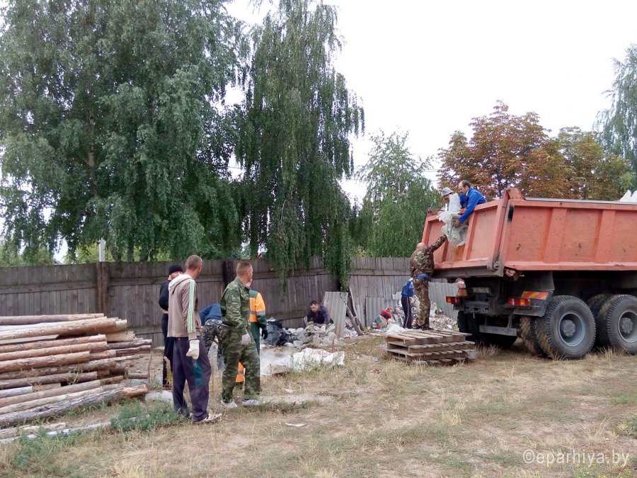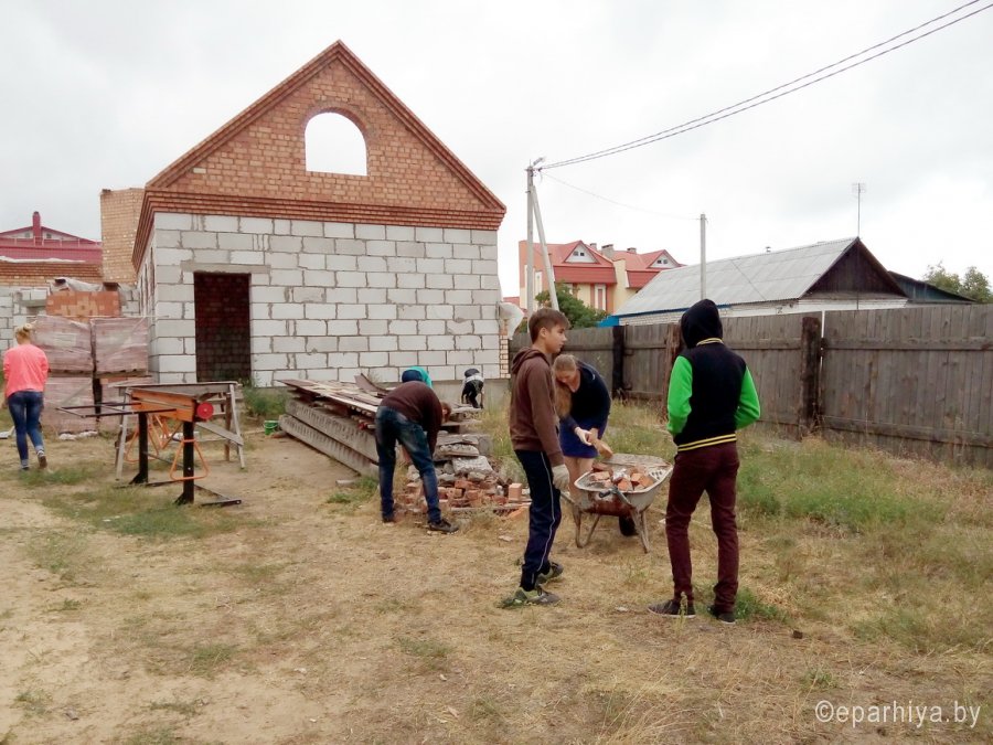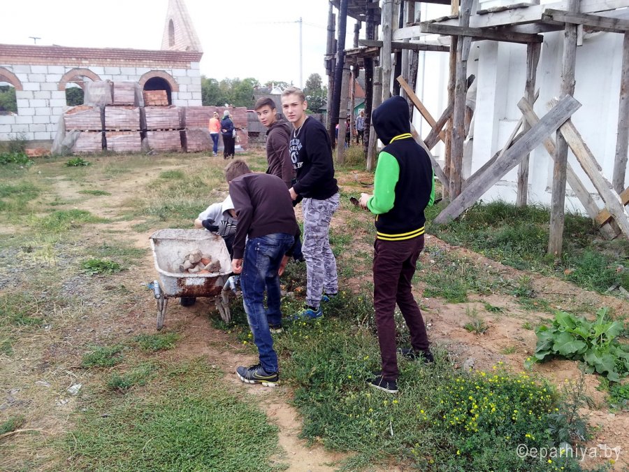 В субботу, накануне престольного праздника, на территории строящегося храма святого благоверного князя Александра Невского в г.Рогачеве, собрались прихожане, чтобы совместными усилиями навести порядок на территории. Среди желающих поработать во славу Божию были не только взрослые, но и студенты педагогического колледжа во главе с заместителем директора по воспитательной работе Шиловой Еленой Васильевной, учащиеся 8-11 классов СШ № 2 и их наставники: Киселева Лилия Анатольевна, Шклярова Мария Ивановна, Самуйлова Анастасия Сергеевна, Старостенко Валентина Ивановна и Логвинова Любовь Дмитриевна. Общими усилиями дружно очистили территорию от строительного мусора и старой травы, вымыли полы в нижнем храме и освободили место для проведения отделочных работ в верхнем храме. |