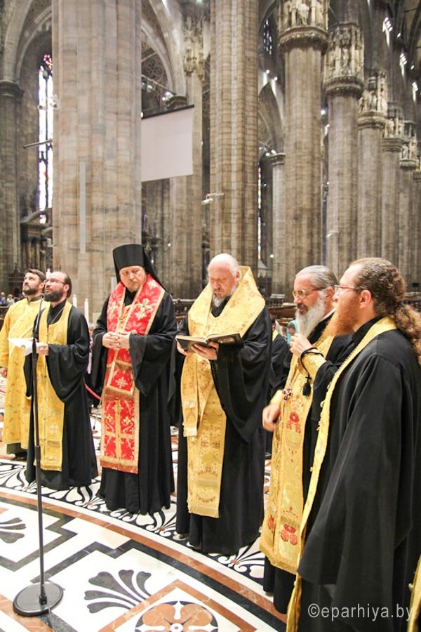 Епископ Гомельский и Жлобинский Стефан вознес свои молитвы перед Святым Гвоздем в Миланском кафедральном соборе Дуомо. Православным христианам дозволено возносить молитвы подле святыни не более одного часа. Святой Гвоздь был подарен св. Амвросию Медиоланскому императором Феодосием. Изначально святыня находилась в базилике св. Феклы, а в 1461 году была перенесена в Дуомо, где находится поныне в своде, высоко над главным алтарем. Ритуал поднятия "ниволы" (разноцветной гондоле) совершается только один раз в год, в канун праздника Крестовоздвижения (13 сентября по амвросианскому календарю). Архиепископ Милана поднимается "ниволе", спроектированной еще Леонардо да Винчи, под самый свод и извлекает Святой Гвоздь из реликвария, после чего водружает его на центральный престол собора, где он находится 3 дня для обозрения и поклонения верующими. |