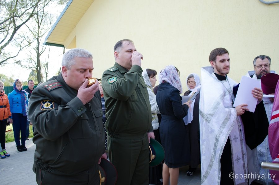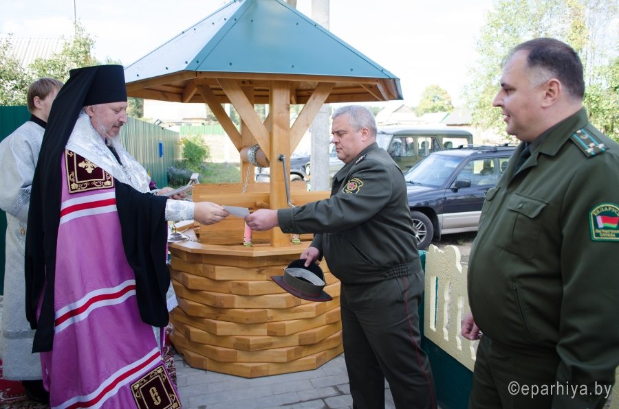 1 октября 2015 года Преосвященнейший Стефан в сослужении духовенства Гомельской епархии совершил чин освящения купели в честь Святителя Николая в приграничном н.п. Новая Гута. На освящении купели присутствовали начальник Гомельской пограничной группы полковник Кузьменко Алексей Викторович и начальник Гомельского областного военного комиссариата полковник Кривоносов Андрей Владимирович. Освятив купель и источник владыка окропил собравшихся святой водой и благословил Святым Образом. После освящения купели Владыка Стефан совершил рабочий визит на пограничные заставы участка Гомельской пограничной группы. |