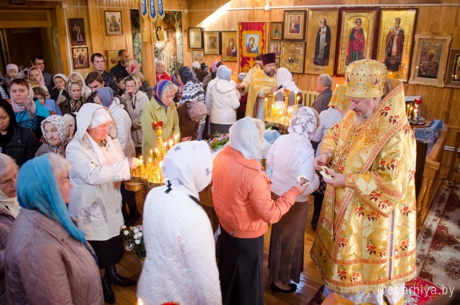 4 октября 2015 года, Преосвященнейший Стефан возглавил Божественную литургию в храме иконы Божией Матери "Тихвинская" д. Ченки. Владыке Стефану сослужили: секретарь Гомельской епархии протоиерей Георгий Алампиев, благочинный Гомельского благочинного округа протоиерей Сергий Леоньков, настоятель храма иконы Божией Матери "Тихвинская" д.Ченки протоиерей Иоанн Лендел и духовенство Гомельской епархии. По завершению Богослужения Преосвященнейший Стефан поздравил причастников с принятием Святых Таин Христовых, обратился к прихожанам храма с проповедью и благословил всех святым образом. |