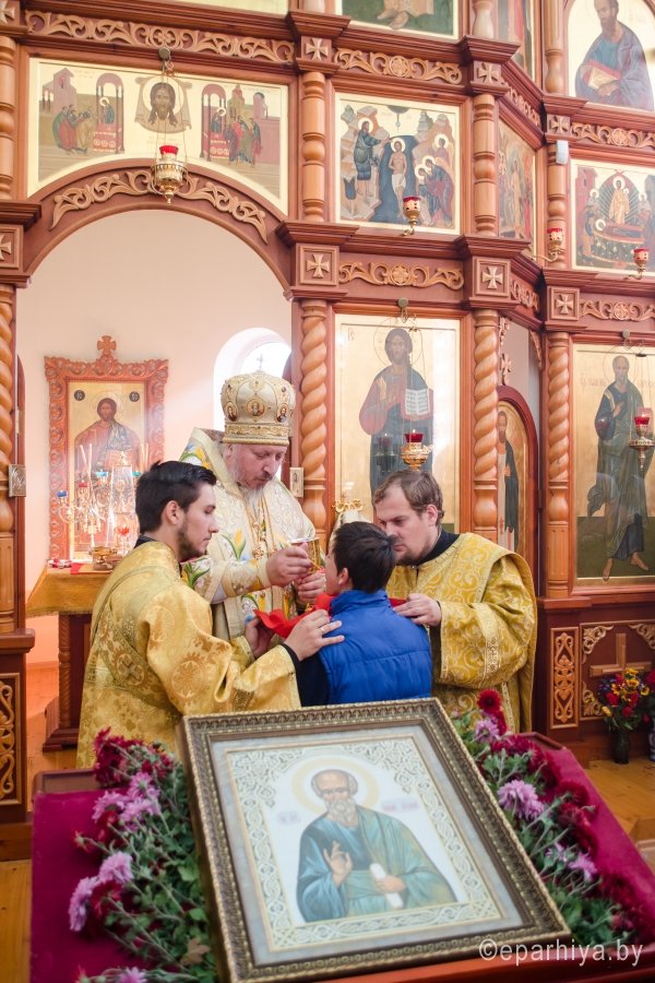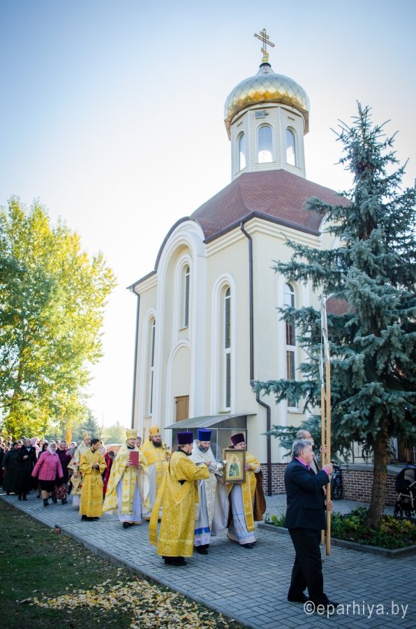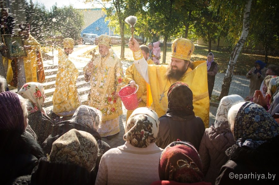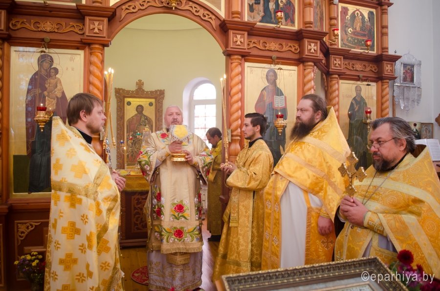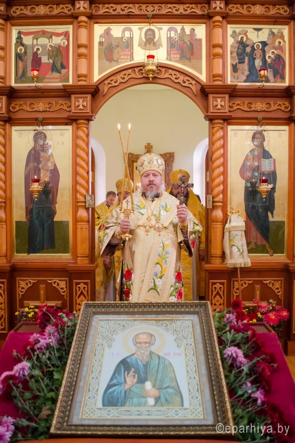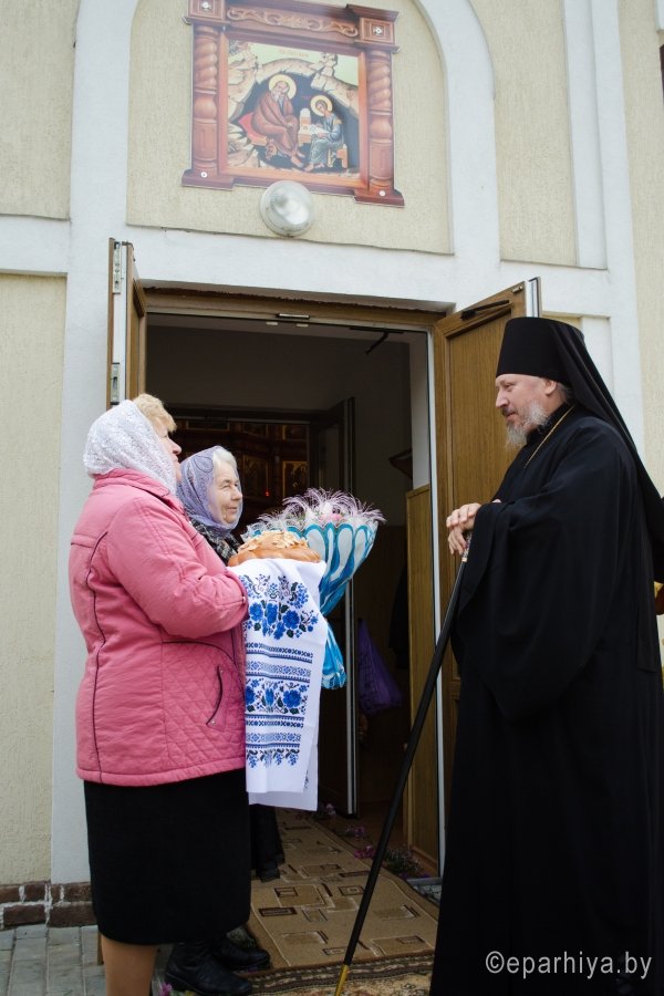 9 октября в день преставления апостола и евангелиста Иоанна Богослова, Преосвященнейший Стефан возглавил Божественную литургию в одноименном храме д.Березки Гомельского района. Преосвященному сослужили: секретарь Гомельской епархии протоиерей Георгий Алампиев, наместник Свято-Никольского мужского монастыря архимандрит Амвросий(Шевцов), благочинный Гомельского районного благочинного округа протоиерей Сергий Леоньков и духовенство храма. По окончании богослужения Владыка возглавил Крестный ход, поздравил всех присутствующих с престольным праздником и благословил Святым Образом. |