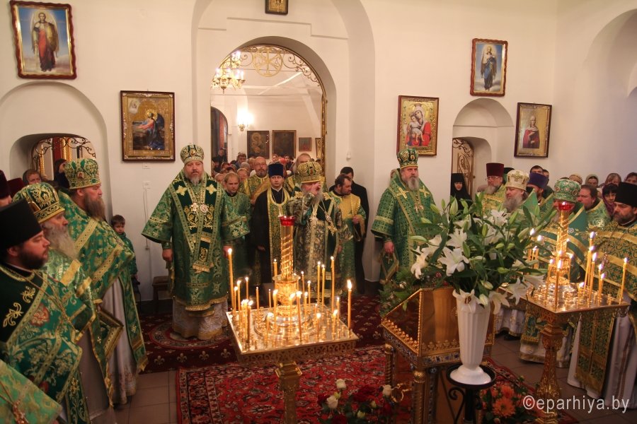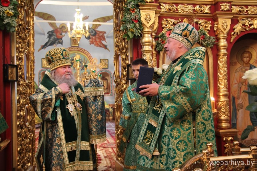 8 октября 2015 года, в день преставления преподобного Сергия, игумена Радонежского, всея России чудотворца, в Свято-Вознесенском кафедральном соборе г.Великие Луки состоялось соборное богослужение. Возглавил Божественную Литургию Преосвященнейший Сергий, епископ Великолукский и Невельский, празднующий в этот день свое тезоименитство. Его Высокопреосвященству сослужили: епископ Гомельский и Жлобинский Стефан, епископ Вяземский и Гагаринский Сергий, а также благочинные церковных округов, руководители епархиальных отделов, настоятели и клирики приходов, наместники и насельники монастырей Великолукской епархии. Разделить радость праздничного Дня собрались сотни великолучан и гости владыки из Брянска, Смоленска и Курска. По окончании литургии был совершен торжественный молебен преподобному Сергию, игумену Радонежскому. Прибывшие на торжества архипастыри сердечно поздравили Преосвященнейшего епископа Сергия с Днем тезоименитства. От лица духовенства, монашествующих и верных чад Великолукской епархии с приветственным словом к владыке Сергию обратился настоятель Свято-Вознесенского кафедрального собора игумен Савватий (Донченко). В дар владыке были преподнесены архиерейский крест и панагия. Преосвященнейший Стефан поздравил Владыку Сергия с днем тезоименитства и преподнес в дар святую Панагию Смоленской иконы Божией Матери. В ответном слове владыка Сергий поблагодарил собравшихся и преподал всем святительское благословение. |