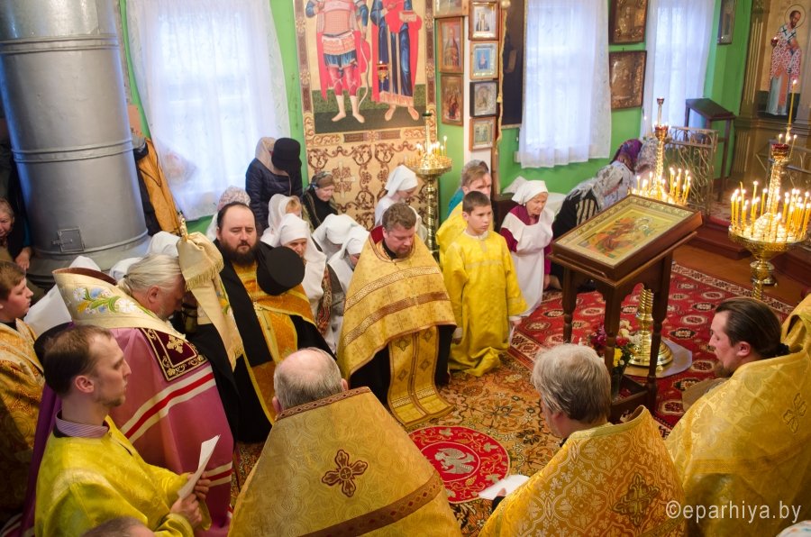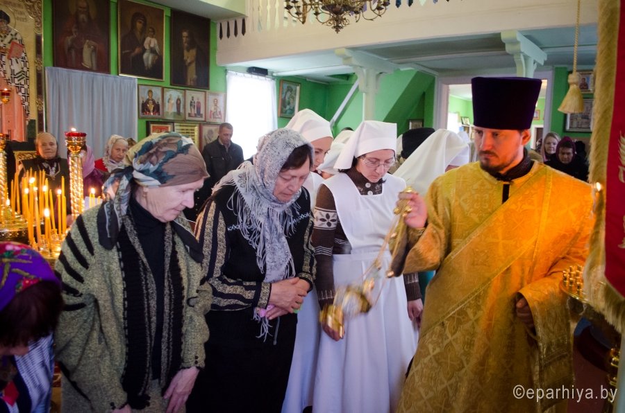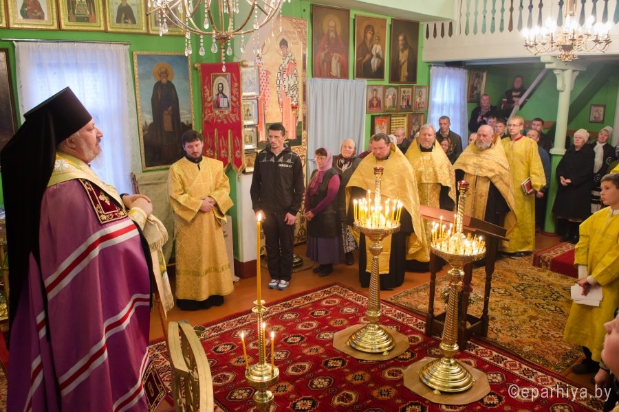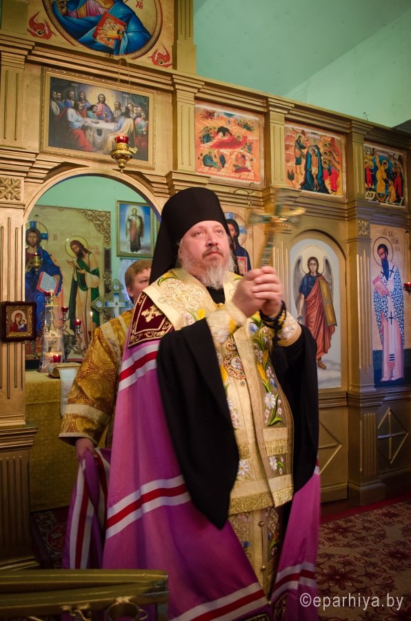 11 октября 2015г. Преосвященнейший Стефан в сослужении духовенство Жлобинского благочинного округа возглавил вечернее богослужение с пением акафиста Пресвятой Богородице в храме святителя Василия Великого г.Жлобина. За богослужением молились сестры сестричества милосердия в честь иконы Божией Матери "Всецарица". В словах проповеди Владыка особо отметил труды сестричества в жлобинском хосписе. |
