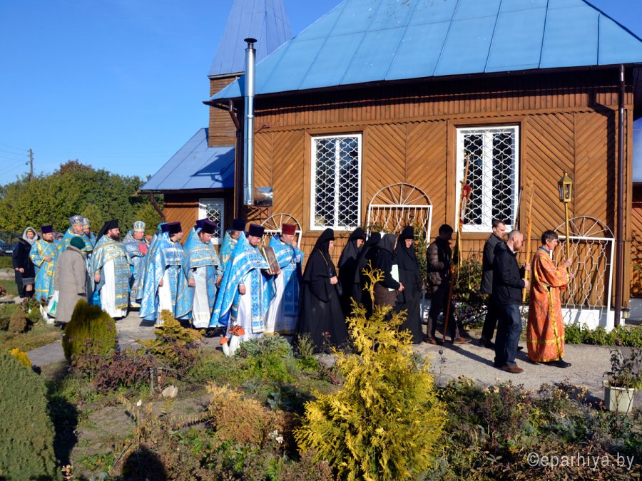 16 октября 2015 года в день празднования иконы Божией Матери "Казимировская" по благословению Преосвященного Стефана, епископа Гомельского и Жлобинского, божественную литургию в Успенском храме Свято-Успенского женского монастыря д. Казимирово Жлобинского района Гомельской епархии возглавил благочинный монастырей Гомельской епархии архимандрит Амвросий (Шевцов). Его высокопреподобию сослужили благочинный Жлобинского округа протоиерей Василий Пилипенко, благочинный Рогачевского округа протоиерей Алексий Смотрицкий, духовенство Жлобинского округа. Проповедь произнес иерей Вячеслав Рябица. Уставные песнопения исполнял хор сестер обители. За богослужением молились паломники из г. Гомеля. Совместная молитва завершилась крестным ходом и поклонением чудотворному образу. Архимандрит Амвросий(Шевцов) поздравил сестер обители и всех собравшихся с праздником . |