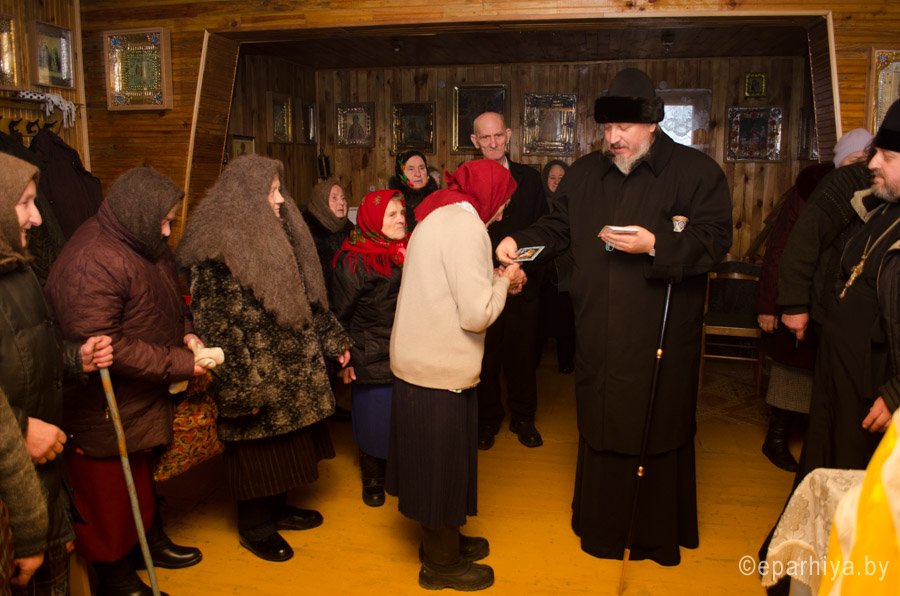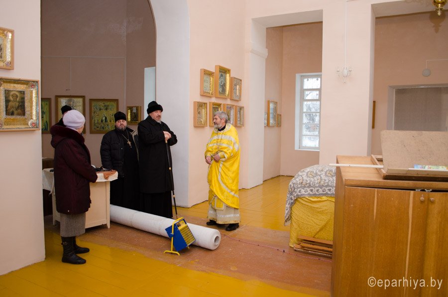 4 января 2015 года Преосвященнейший Стефан, епископ Гомельский и Жлобинский, совершил рабочий визит в храм Святителя Николая Чудотворца, расположенный в деревне Столбун Чечерского благочинного округа. В ходе визита Владыка ознакомился с ходом реставрационных работ, проводимых в храме. |