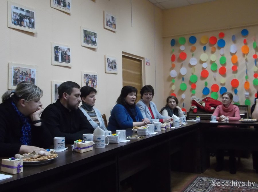 По благословению Преосвященнейшего Стефана, епископа Гомельского и Жлобинского Отделом по социальному служению и церковной благотворительности епархии совместно с учреждением «Гомельский городской центр обслуживания семьи и детей» 22 октября 2015 года, в рамках XII Свято-Покровских образовательных чтений была проведена секция по теме: «Православные традиции белорусской семьи. Позитивное осмысление семейных ценностей». Место проведения: учреждение «Гомельский городской центр обслуживания семьи и детей», конференц- зал. Цель секции-укрепление духовно-нравственных основ семьи, возрождение семейных традиций православной белорусской семьи. В работе секции приняли участие: директор центра Мазенина Н.И. и специалисты по оказанию социальной и психологической помощи семьям и детям учреждения «Гомельский городской центр обслуживания семьи и детей», координаторы приходов храмов г.Гомеля, представители многодетных семей. Секцию провел протоиерей Максим Калеватов, клирик прихода храма Святого великомученика Георгия Победоносца в г.Гомеле. Вначале отец Максим выступил с содержательным докладом на тему: «Духовно-нравственная основа православной семьи. Оказание семьям духовной помощи и поддержки». Затем координатор социального отдела епархии Машковская А.М. ознакомила всех присутствующих с опытом работы по оказанию священниками и мирянами духовной, психологической, благотворительной, социальной и материальной помощи и поддержки нуждающимся многодетным семьям. И затронула тему постепенного воцерковления подопечных многодетных семей, организации паломнических поездок и др. Координатор прихода храма Преображение Господня г.Гомеле - Зур Игорь Евгеньевич поделился интересным и разноообразным опытом работы прихода храма с многодетными семьями и другими категориями семей. Так же все присутствующие координаторы приходов храмов г.Гомеля рассказали об их опыте работе с семьями. Представительницы многодетных семей: Рудакова Елена Александровна и Дергачева Ольга Михайловна рассказали о том реальном опыте вхождения в Церковь их самих вместе с детьми и поблагодарили за оказываемую помощь. Специалисты по оказанию социальной и психологической помощи семье и детям учреждения «Гомельский городской центр обслуживания семьи и детей» Гришечкина Л.И., Козловская Е.А., Шапорева Л.В. рассказали об организации и проведении для семей конкурсов, выставок, встреч, бесед, посвященных церковным православным праздникам: Рождества Христова, Пасхи, Покрова Пресвятой Богородицы, а так же приуроченным к государственным праздникам: Дню семьи, Дню защитников Отечества, Дню Матери, Дню защиты детей и др., с целью формирования нравственных ориентиров у родителей и детей». В завершение секции Протоиерей Максим Калеватов, клирик прихода храма Святого великомученика Георгия Победоносца в г.Гомеле подвел итоги секции. Так же было обсуждена тема о дальнейшем сотрудничестве. Координатор социального отдела епархии Машковская А.М. поблагодарила всех за деятельность по оказанию помощи многодетным семьям и предложила продолжить сотрудничество. Анна Михайловна высказала предложение о ведении психологами центра по их желанию на добровольной основе консультирования беременных женщин по сохранению жизни зачатых младенцев, что бы православных много