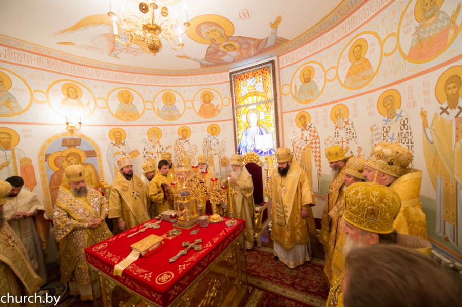 4 октября 2015 года исполнилось 50 лет со дня архиерейской хиротонии митрополита Филарета (Вахромеева), Почетного Патриаршего Экзарха всея Беларуси. В этот день праздничную Божественную литургию в домовом храме Минского епархиального управления в честь Собора Белорусских святых совершили митрополит Филарет, Почетный Патриарший Экзарх всея Беларуси; митрополит Минский и Заславский Павел, Патриарший Экзарх всея Беларуси; митрополит Смоленский и Рославльский Исидор; архиепископ Новогрудский и Слонимский Гурий; епископы: Могилевский и Мстиславский Софроний; Брестский и Кобринский Иоанн; Гомельский и Жлобинский Стефан; Бобруйский и Быховский Серафим; Туровский и Мозырский Леонид; Борисовский и Марьиногорский Вениамин; Молодечненский и Столбцовский Павел; Лидский и Сморгонский Порфирий. Архипастырям сослужили: секретарь Минского епархиального управления, благочинный 3-го Минского городского округа, настоятель Александро-Невского храма города Минска протоиерей Николай Коржич и духовенство Минской митрополии. Богослужебные песнопения исполнил хор Александро-Невского храма города Минска под управлением Сергея Смольского. За Литургией молились игумении женских монастырей, сотрудники Минского епархиального управления и Синодальных отделов Белорусской Православной Церкви, верующие минчане. По окончании богослужения митрополит Павел зачитал поздравительный адрес Синода Белорусской Православной Церкви по случаю 50-летия архиерейской хиротонии митрополита Филарета. «Перечисляя свойства любви, апостол Павел, среди прочего, указывает, что она не ищет своего (1 Кор. 13: 5). Поистине Вы, владыка, восприняв благодать архиерейства, не искали ничего «своего» — частного и сиюминутного, — но лишь того, что направлено ко благу Святой Православной Церкви. Слава Богу за то, что именно Вы в свое время возглавили труды по возрождению церковной жизни на многострадальной белорусской земле! И слава Богу за впечатляющий результат этих трудов!» — говорится, в частности, в тексте поздравительного адреса. В ответном слове митрополит Филарет тепло поблагодарил митрополита Павла, архиереев, духовенство и всех гостей праздника. «Я благодарен Господу за каждый год моего архиерейского послушания. Для меня оно было и будет бесценным даром. Что я сделал за это время — рассудят люди и история. Скажу одно: поистине прав был апостол, когда говорил: Всё могу в укрепляющем меня Иисусе Христе (Флп. 4: 13). Без Христа мы на самом деле ничего не можем. А с Ним можем всё!» — сказал Почетный Патриарший Экзарх всея Беларуси. Митрополит Павел преподнес в дар митрополиту Филарету икону Спасителя, святую просфору и букет роз. Затем было возглашено многолетие. |
