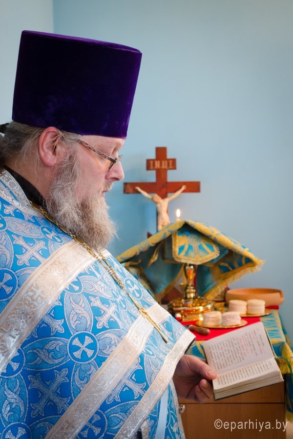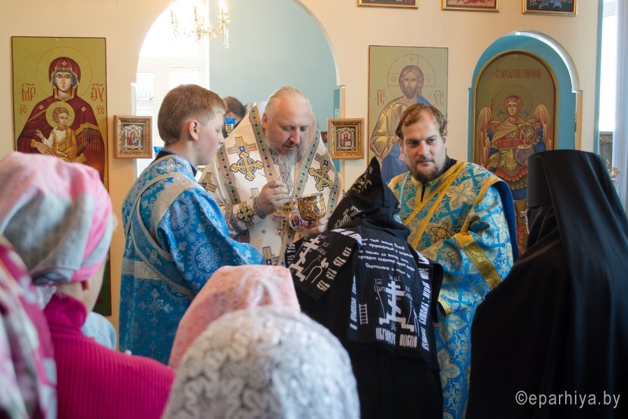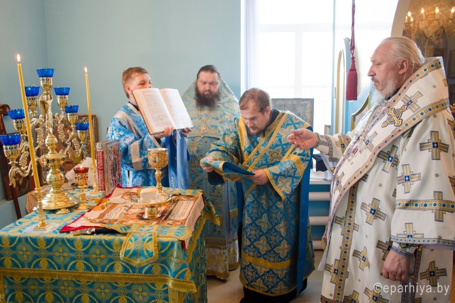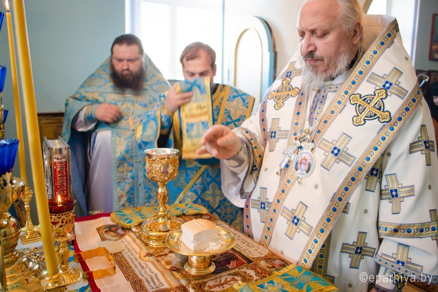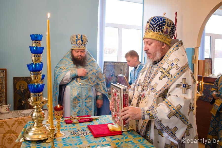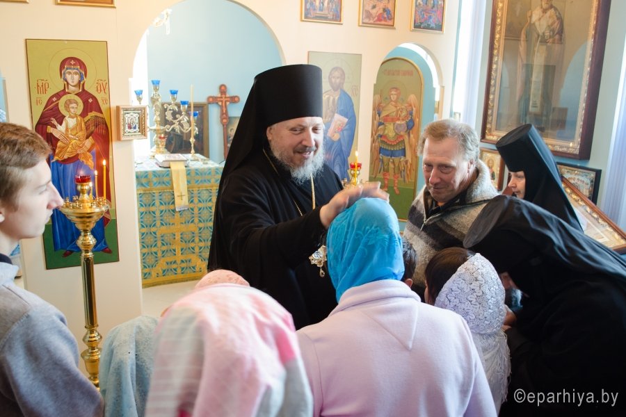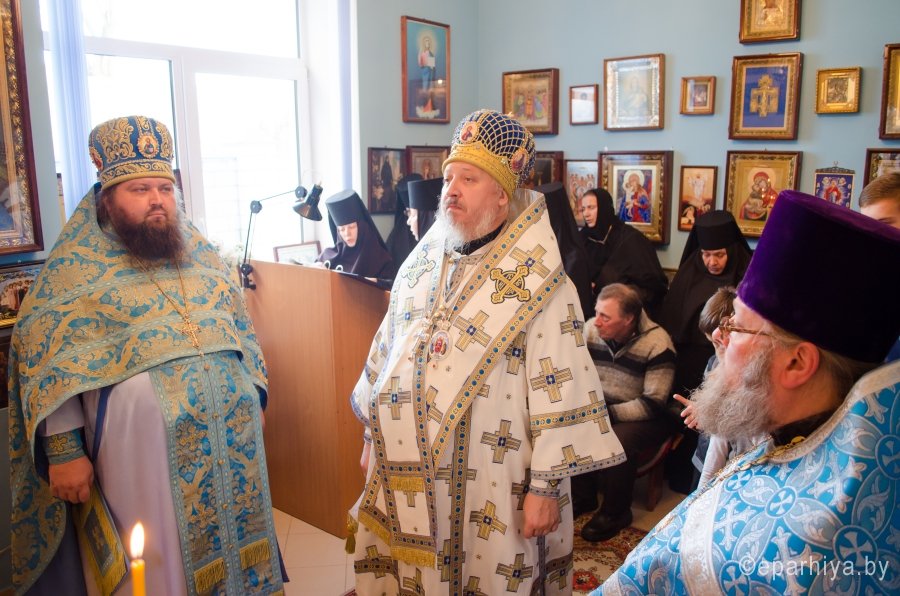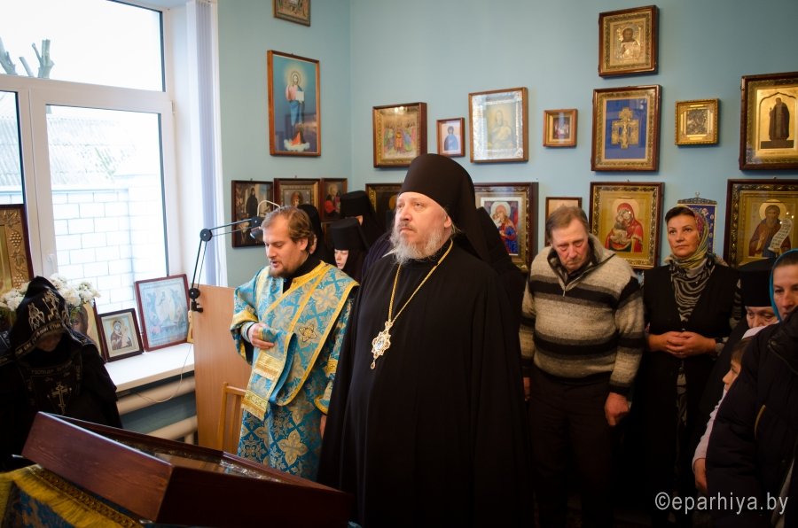28 октября 2015г., в день празднования иконы Божией Матери "Спорительница хлебов", Преосвященнейший Стефан в сослужении благочинного монастырей Гомельской епархии архимандрита Амвросия(Шевцова) возглавил Божественную литургию в домовом храме иконы Божией Матери "Спорительница хлебов" подворья Свято-Тихвинского женского монастыря в д.Бобовичи Жлобинского района. За литургией молились игуменья Вера (Афонькина) с сестрами Свято-Тихвинской обители. По окончании богослужения Владыка обратился ко всем присутствующим со словами Архипастырского назидания. |