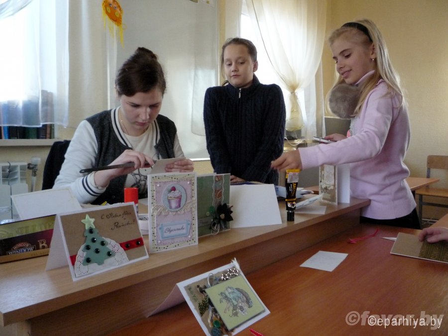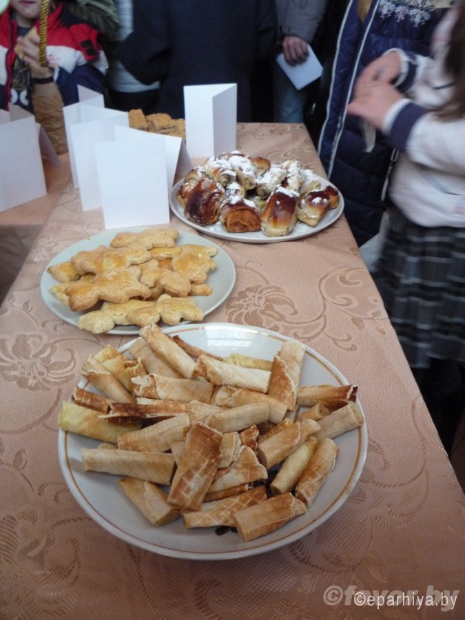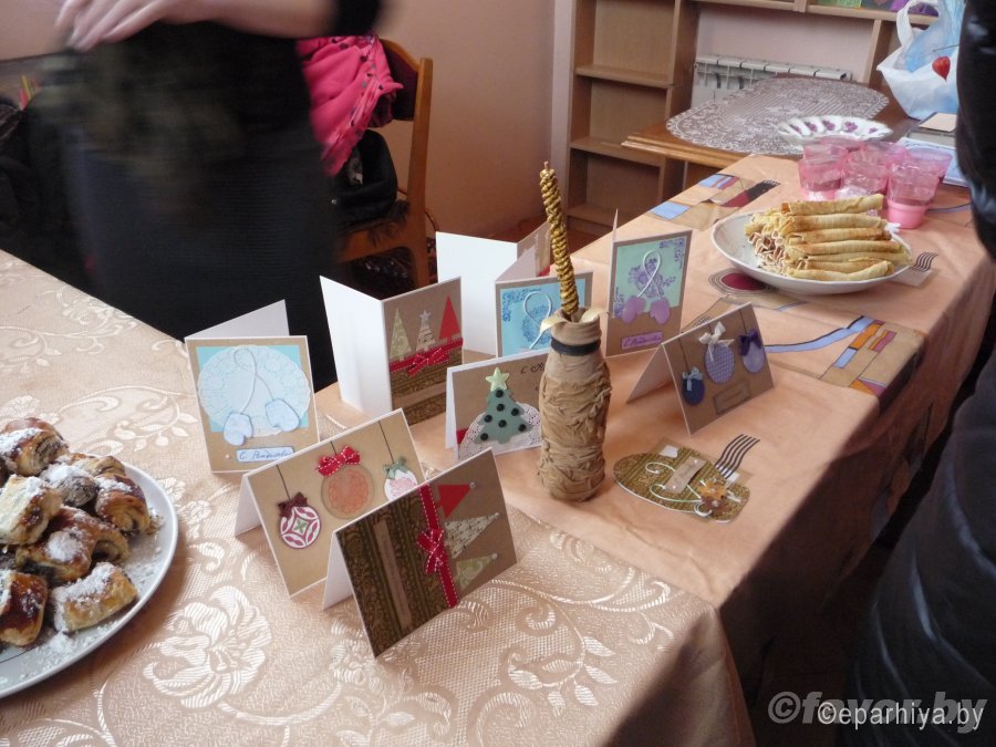 1 ноября 2015 года, в храме Преображения Господня, по завершению Божественной литургии, прошел первый день благотворительной ярмарки. На ярмарке были представлена свежая домашняя выпечка приготовленная прихожанами храма и Рождественские поздравительные открытки, которые были изготовлены накануне в субботу 31 октября учениками воскресной школы прихода, на мастер-классе под руководством Анастасии Куценко. По завершению Божественной литургии, «Ярмарка добра» открыла свои объятья. Понравившиеся поделки или выпечку можно было приобрести за пожертвования. Благодарим всех неравнодушных прихожан принявших деятельное участие в организации ярмарки и приглашаем всех желающих принять участие в благотворительной ярмарке, которая будет проводится в храме Преображения Господня г. Гомеля каждое воскресение. Также приглашаем посетить мастер-классы по технике "скрапбукингу" и "декупаж", которыя проводятся по субботам в Библиотеке храма Преображения Господня г. Гомеля. Принять участие в ярмарке может каждый желающий. Домашняя выпечка, праздничные поделки, открытки, подарки - все это можно будет выставить на ярмарке, а все вырученные на благотворительной ярмарке средства, будут направлены для приобретения подарков для многодетных и малоимущих семей к празднику Рождества. |