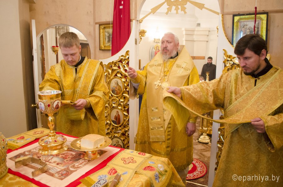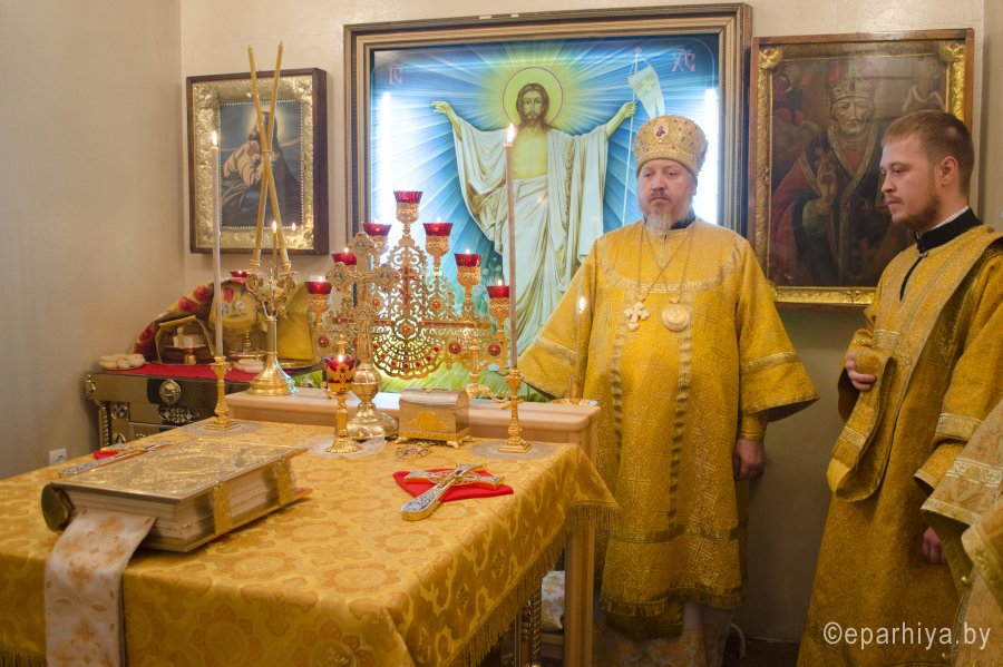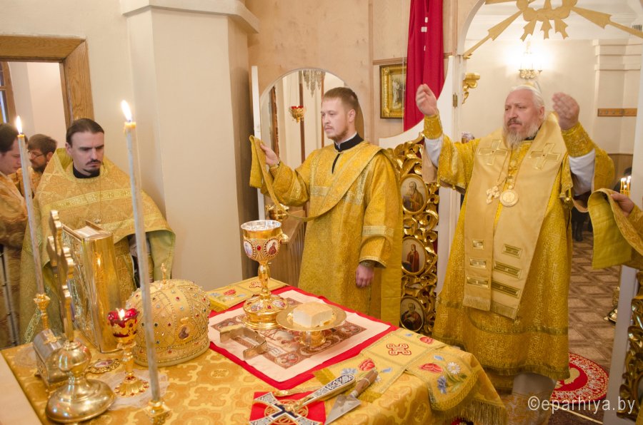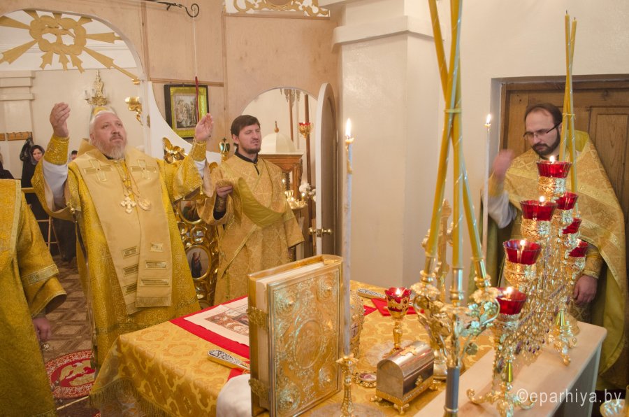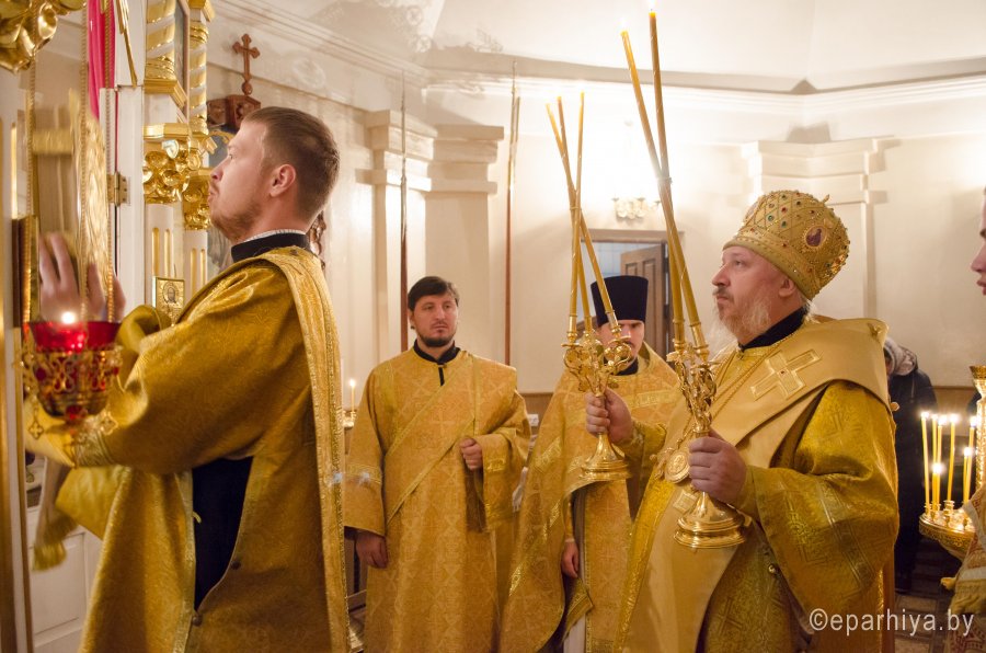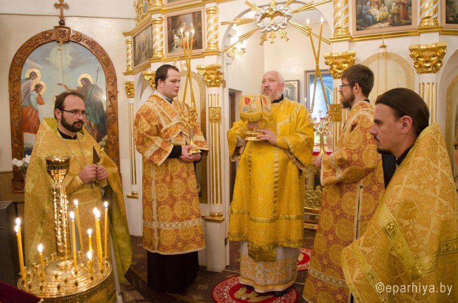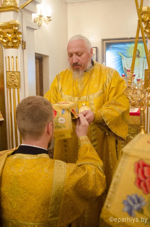 3 ноября 2015г., в день памяти прп. Илариона, Преосвященнейший Стефан, в сослужении духовенства собора, возглавил Божественную литургию в крестильном храме Свято-Петро-Павловского кафедрального собора г.Гомеля. По окончании богослужения Владыка обратился к молящимся со словами Архипастырского назидания. |