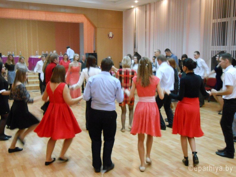 31 октября 2015 года в здании ГУО "Средняя школа №24 г.Гомеля" прошел танцевальный вечер для православной молодежи «Золотая осень». Организаторами вечера выступили: отдел по работе с молодежью Гомельской епархии и молодежь из братства в честь Святых Царственных Страстотерпцев при приходе храма преподобного Серафима Саровского. Открыл вечер Андрей Булацкий, обратившись с напутственным словом к молодым людям. Программа танцевального вечера состояла из показательных танцев, которые приготовили пары, ходившие на репетиции, конкурсов и массовых танцев. Однако участие в вечере не зависело от того посещали они репетиции или нет. Участие в танцевальном вечере приняли курсанты института МЧС, а также молодежь из г. Микашевичи. Проведение танцевальных вечеров является хорошей возможностью для повторения танцевальной программы а также для дальнейшей подготовки к Рождественскому балу. |