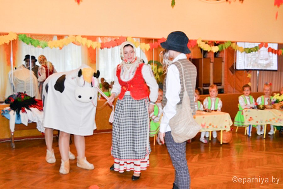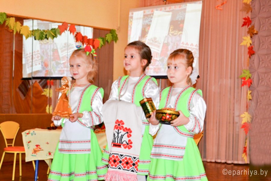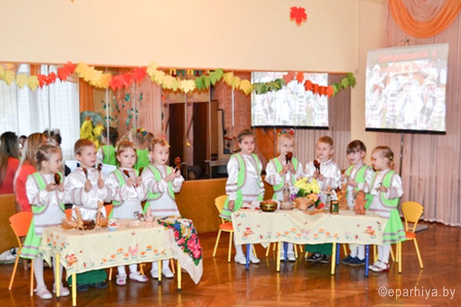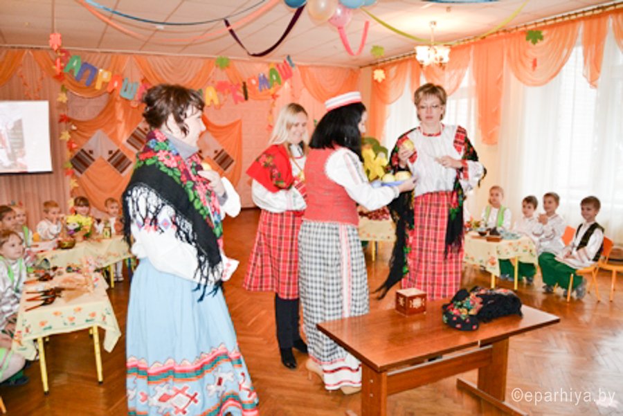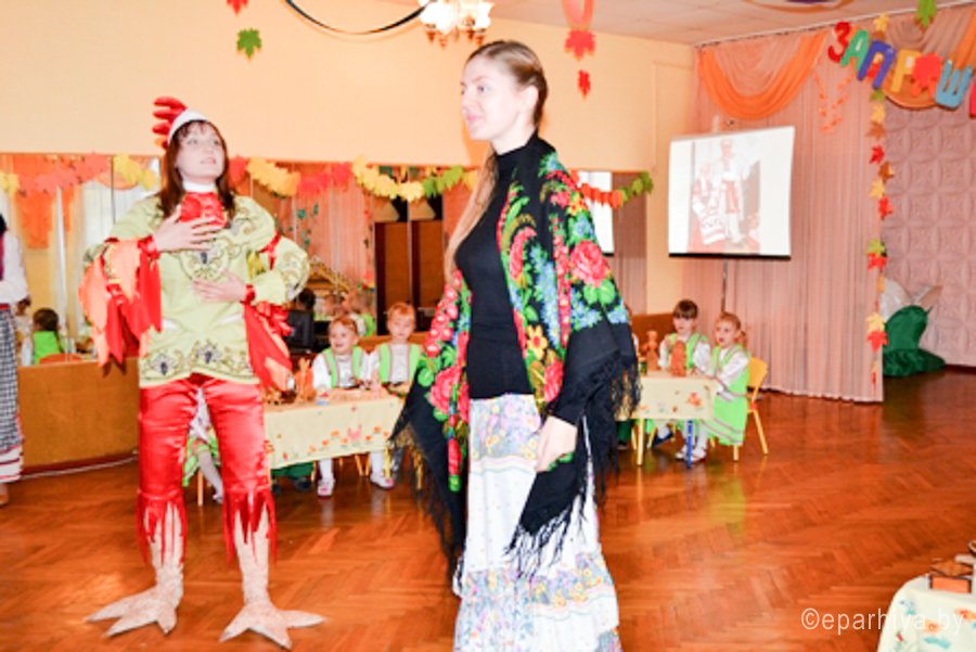 Мастер-класс педагогов инновационной площадки ГУО «Ясли-сад №150 г. Гомеля» по теме «Я люблю Беларусь» прошел в дошкольном учреждении образования. Приглашенные - заместители и заведующие яслей-садов г. Гомеля, педагоги, писатель, православный священник. Организаторы одной из целей поставили напомнить участникам о том, что самым благодатным возрастом для усвоения родного языка считается пятый год дошкольного детства. Для мастер-класса был специально подготовлен праздник, который назывался «Восеньскi кiрмаш». Все действо происходило на белорусском языке. Юные актеры прекрасно справились со своими ролями. Своими яркими красками и живыми эмоциями представление настолько запало в души гостей, что к концу мероприятия всех просто переполняло чувство гордости и уважения к маленьким белорусам – воспитанникам яслей-сада и их педагогам. Обратную связь удалось получить благодаря анкетированию, которое было проведено в конце мероприятия. «Знать два языка – не только право, но и обязанность каждого Гражданина» - сказал когда-то министр образования Сергей Маскевич. Именно эту мысль подчеркивали в своих выступлениях присутствовавшие на празднике гости: иерей Вячеслав Сердюков, настоятель храма Рождества Пресвятой Богородицы в аг. Терешковичи и по совместительству священник храма прп. Серафима Саровского в г. Гомеле, Борис Ковалерчик, автор книги «Ауцюкi жартуюць» и Наталья Никитина, заведующая отделом областной библиотеки имени В.И. Ленина. Иерей Вячеслав Сердюков уже более двух лет ведет совместную работу с руководством яслей-сада №150. Все мероприятия, проводимые в рамках сотрудничества учреждения образования и Православной Церкви, направлены на нравственное воспитание детей. Без знания своих корней, без сохранения истории, без любви к роднай мове невозможно будущее ни одного народа. И общие усилия педагогов и священников направлены именно на это: сохранить, передать, воспитать. В своем приветственном слове, о. Вячеслав сказал о важности того дела, которое делают воспитатели. Батюшка привел в пример Притчу о сеятеле, которую Христос рассказал своим ученикам. Ведь так и есть на самом деле, что посеется в раннем возрасте в детские души, то и будет собираться потом благодатным урожаем добрых поступков, любви к ближнему и к Родине. И именно поэтому так важна роль воспитания деток в правильных нравственных ориентирах. Методисты учебно-методического кабинета отдела образования спорта и туризма Гомельского горисполкома Людмила Быстрова, Наталья Шкудрова, Людмила Пименова – организаторы и вдохновители мастер-класса, постарались органично вписать в его программу теорию и практический показ интерактивных форм работы с аудиторией. Заведующая Галина Винокурова пригласила всех желающих в ГУО «Ясли-сад №150 г. Гомеля» за опытом организации работы по ознакомлению с белорусским языком и культурой. |