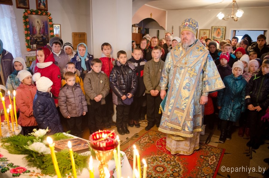 6 ноября 2015г., в праздник иконы Божией Матери "Всех скорбящих Радость", Преосвященнейший Стефан возглавил Божественную литургию в одноименном храме д.Бывальки Лоевского благочинного округа. Преосвященному сослужили: секретарь Гомельской епархии протоиерей Георгий Алампиев, благочинный Лоевского благочиния иерей Дмитрий Чварков и духовенство храма. По окончании богослужения Владыка обратился к молящимся со словами Архипастырского наставления и благословил всех Святым Образом. |
