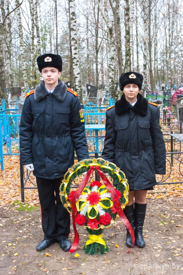 12 ноября 2015 года в г. Жлобине состоялось перезахоронение останков военного летчика, лейтенанта Дикуна Владимира Пантелеевича, уроженца Жлобинщины, погибшего 2 июня 1942 года после выполнения боевого задания в 5-6 км юго-восточнее д. Ключики Угранского района. Заупокойный молебен совершил клирик Жлобинского благочиния протоиерей Леонид Михайловский. Более 70 лет точное место гибели лейтенанта Владимира Дикуна, чей штурмовик Ил-2 был сбит в 1942 году где-то на границе Смоленской и Калужской областей, оставалось неизвестным. Отыскать упавшую боевую машину и приоткрыть тайну этой трагедии смог российский поисковый отряд «Зеленая Верста». А в минувший четверг останки героя, который является уроженцем Жлобинщины, по желанию его родственников с воинскими почестями были захоронены на старом центральном кладбище в Жлобине. Владимиру Дикуну было всего 28 лет, когда он пал смертью храбрых, возвращаясь с боевого задания. Сегодня имя этого человека свято не только для его родственников, но и для всех, кто чтит память защитников Родины, кто гордится Победой над фашизмом. Об этом на траурном митинге говорили заместитель председателя райисполкома Игорь Аслюк, начальник отдела идеологической работы, культуры и по делам молодежи райисполкома Валентина Нехай, военный комиссар района полковник Владимир Пашук, командир поискового отряда «Зеленая Верста» Дмитрий Мысник. По завершению молебна наступила минута прощания и прозвучал оружейный салют. |
